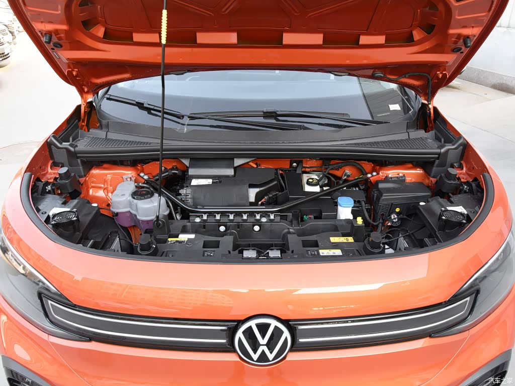 外观方面,一汽-大众ID.6 CROZZ采用ID.系列家族设计,前脸采用半封闭式格栅,中间位置是两条发光灯带和扁平化的大众LOGO,点亮后视觉效果不错。新车采用IQ.Light矩阵式大灯,灯腔内部结构较为复杂,支持自动远近光、自动头灯、转向头灯、大灯延时关闭等功能,看起来很有科技感。下包围采用黑色中网,并加入了银色饰条和蜂窝状网格设计,呈现出更好的运动效果。