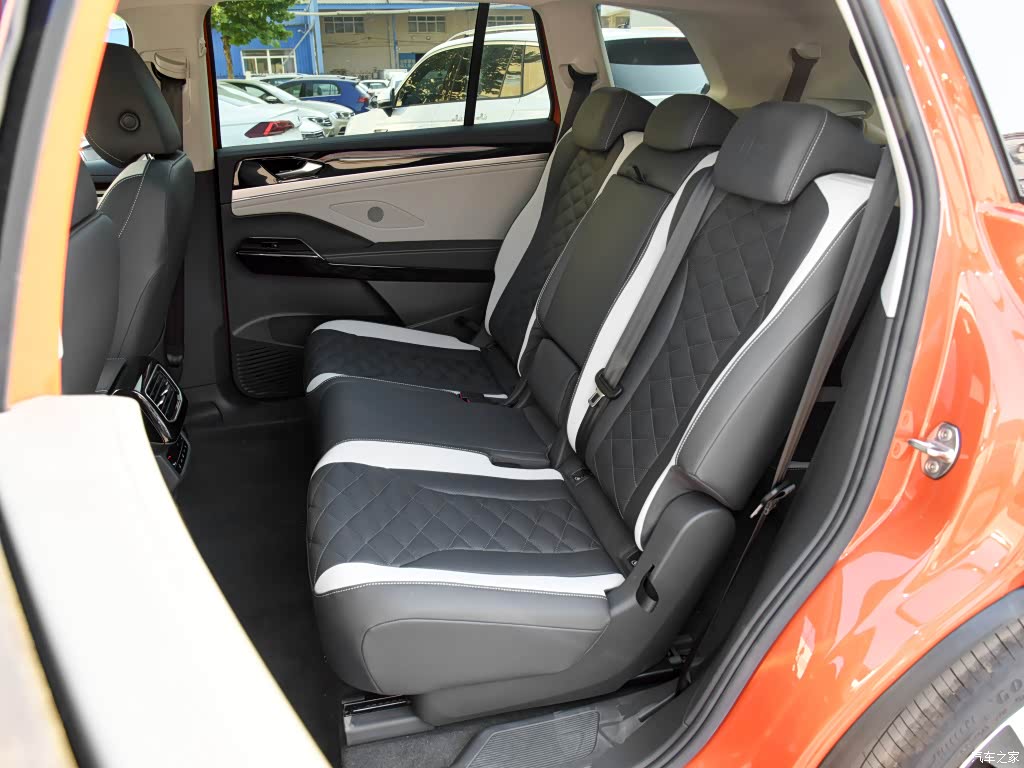 新车座椅提供仿皮、真皮、皮/织物混搭三种材质,并提供6座和7座两种布局方式,以满足不同消费者的用车需求。得益于较大的车身尺寸,第二排的乘坐空间还算充裕,但第三排就显得有些局促,只适合短途应急,不适合长时间乘坐。不过,第三排座椅放倒后可以与后备厢形成一个纯平的空间,非常适合装载一些比较大的物品。