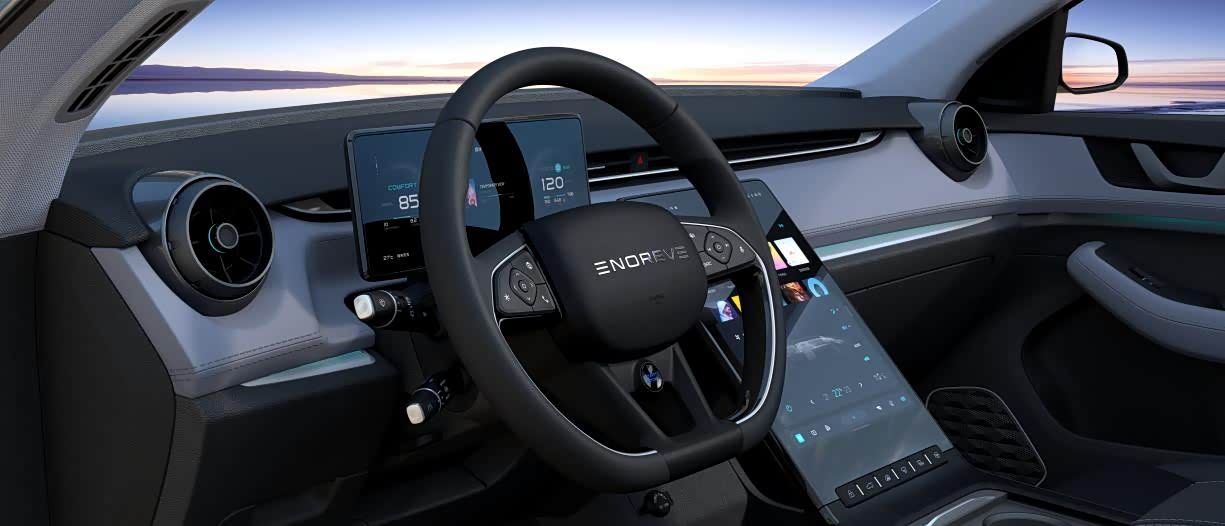 据悉,新车搭载的14.8英寸中控屏拥有2k超高分辨率,画质清晰细腻,视觉观感更炫酷、更潮流。同时,其驾驶舱的仪表屏为10.25英寸高清全液晶屏幕,科技感满满。在配置上,出于安全方面考虑,天际ME5采用双主机高速运行,全车具备两个“大脑”,为用户带来更安全、更智能的出行体验。