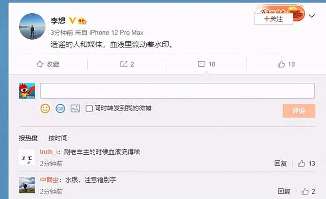 随后,此次事件似乎也激怒了高层,理想汽车CEO李想在微博上表示:“造谣我们用水银的人和媒体,祝愿你们血液里流动着水银,脑子里装满了水银!”