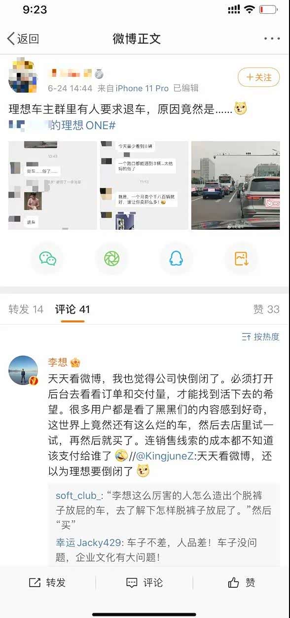 比如在早前,李想在社交平台上发表评论,“天天看微博,我也觉得公司快倒闭了。必须打开后台去看看订单和交付量,才能找到活下去的希望。”