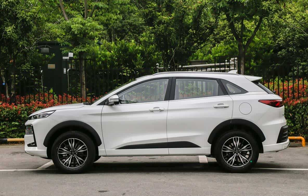 侧面流线感非常明显,由低向高的窗线营造出向前俯冲的车身姿态,侧裙和轮眉都加入黑色塑料装饰,营造出跨界车既视感。尺寸方面,新车长宽高分别为4605*1890*1700mm,轴距为2720mm。