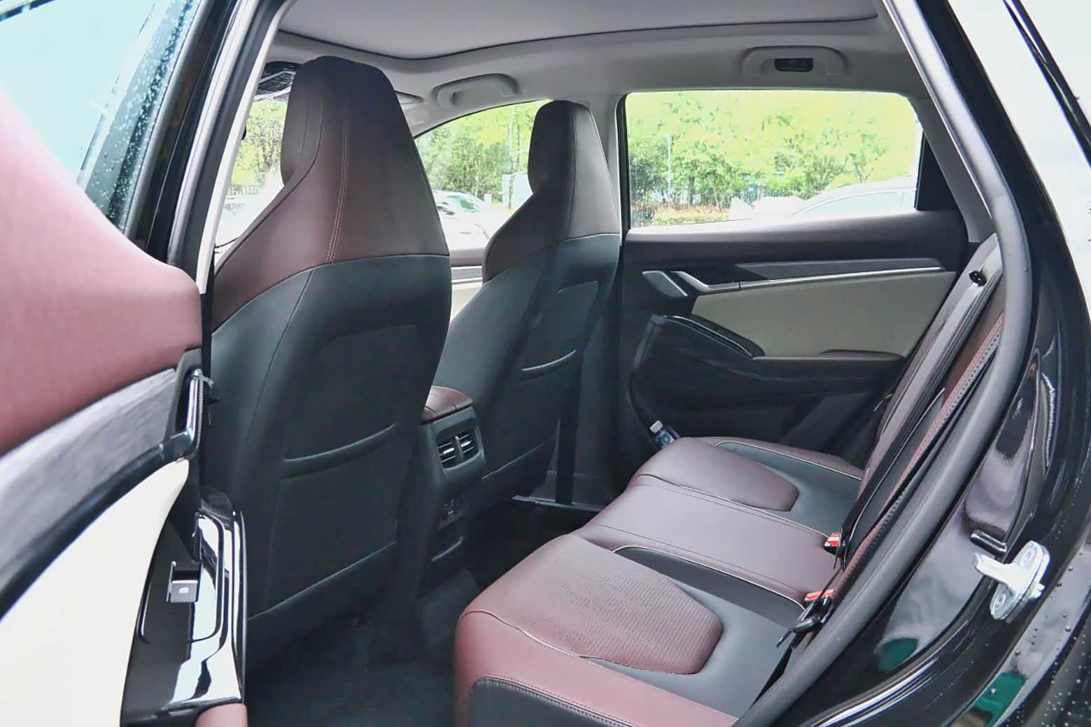 将前排座椅调整到180cm的坐姿,头部空间还剩下大概3-4指的水平。保持不动,直接来到后排,腿部空间能有两拳以上的余量,头部会因为车顶的流线型而有些许影响,但总体来说表现符合预期。配置方面带有独立的空调出风口以及手机电源接口。值得一提的是,思皓QX具有一个生命体征监测装置,如果锁车后还能监测到车内移动的物体或者声音,车辆会自动发送通知给车主,这个功能或许一辈子都用不上,但世事难料,谁知道会不会有犯糊涂的一天,多一层保护也不是一件坏事。