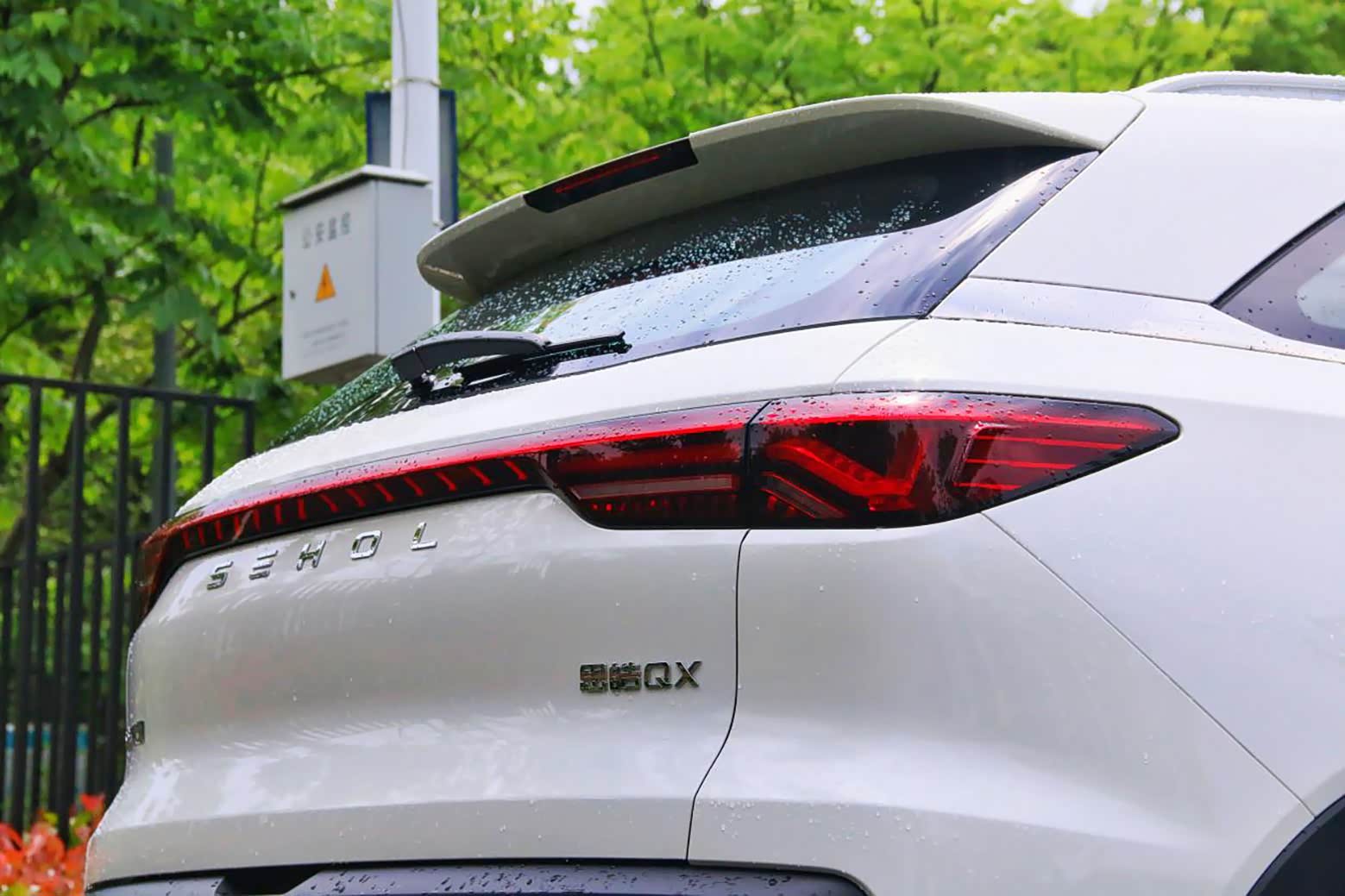 车尾采用贯穿式尾灯,夜晚点亮后有着不错的车辆辨识度,同时思皓的LOGO变成的英文标识,看来和大众合作之后学到了精髓。下方为一块融合了牌照框的黑色塑料饰板,底部为双边共两出排气。