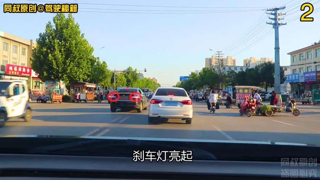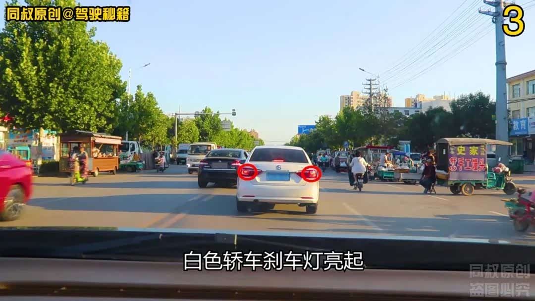 白色轿车刹车灯亮起,给黑色轿车变道加塞提供了便利。