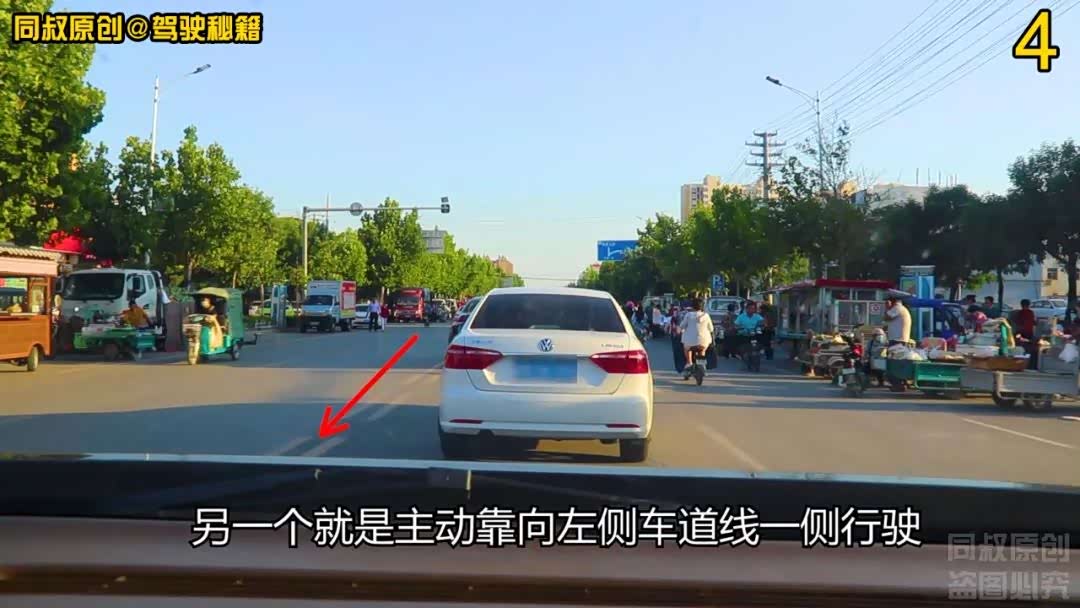 那如何防止这种不自觉的司机加塞呢?在这样的拥堵慢行跟车路段,一个是车距不要间隔太大,另一个就是主动靠向左侧车道线一侧行驶,即便是有车辆打算加塞,也不会在你这里找到突破口。