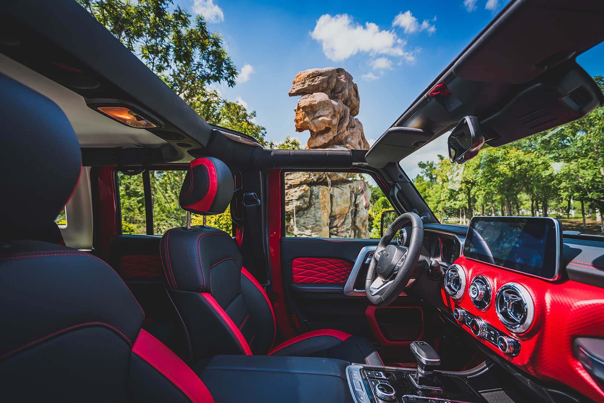BJ40不仅是出行的伙伴,宽敞的车内空间和敞篷属性还赋予它更多玩具的属性。后备厢尾门采用两段式开启方式,并有防滚架结构,这为装载或改装提供了更多的便利。作为中国品牌中唯一能够拆卸顶篷的硬派越野车,拆掉顶篷后的BJ40不仅能够在城市中实现传统城市SUV想都不敢想的出行体验,还能让城市通勤也变得更加亲近自然。