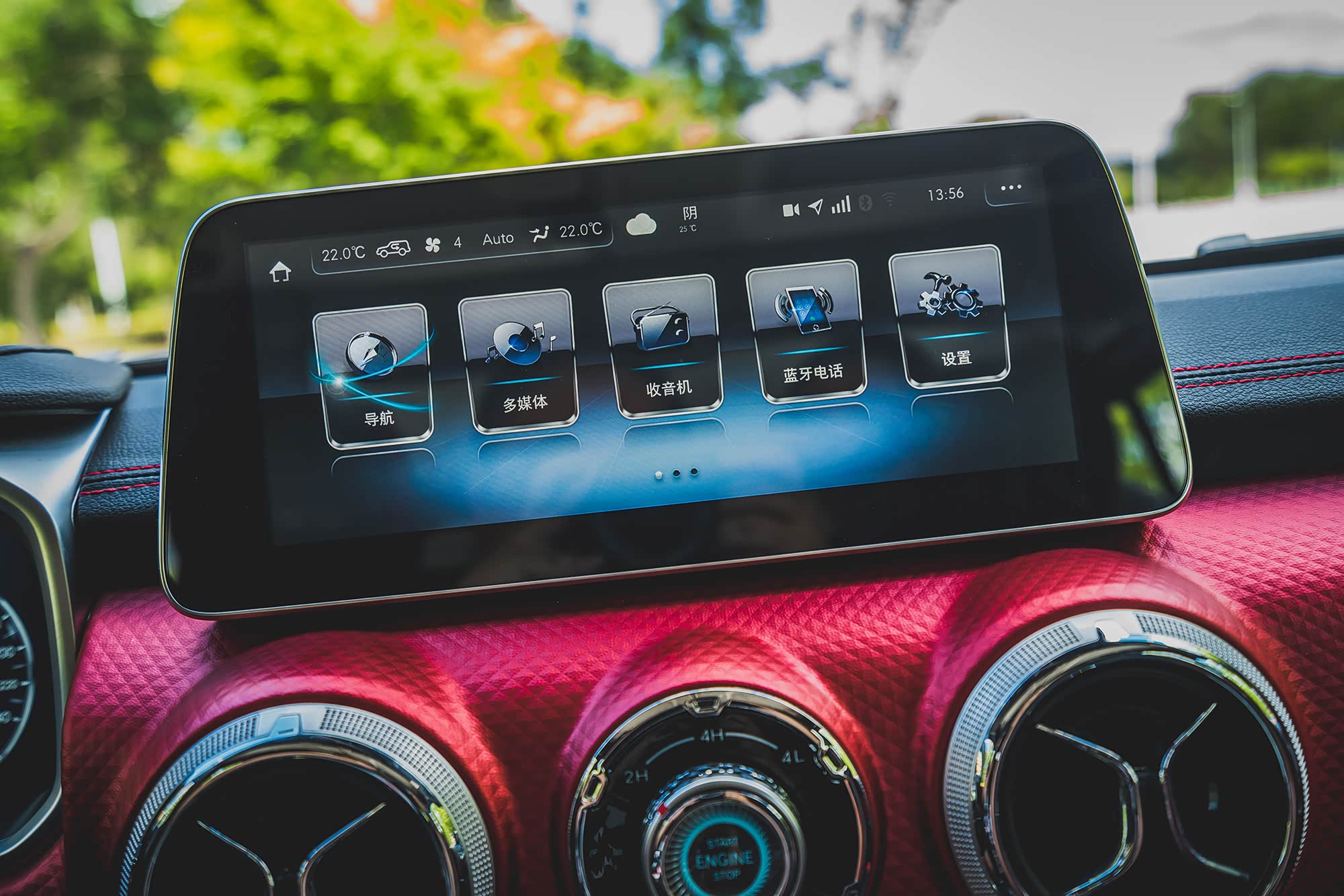 BJ40的车内同样营造出硬派的氛围。副驾驶前方的扶手是硬派越野车专属的设计,四个北汽Logo造型的空调出风口赫然在目,它们的正中间便是镀铬装饰的发动机启动按钮、四驱系统旋钮和驾驶模式选择按键,这里集合了整车最为核心的控制按键。BJ40全系标配了12.3英寸全液晶仪表盘,搭配10英寸中控多媒体显示屏、流媒体后视镜和电子挡杆,无论科技属性还是功能性都不输给任何一台城市SUV,这就是BJ40硬派的设计风格和科技感的完美相融。