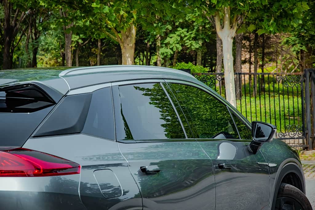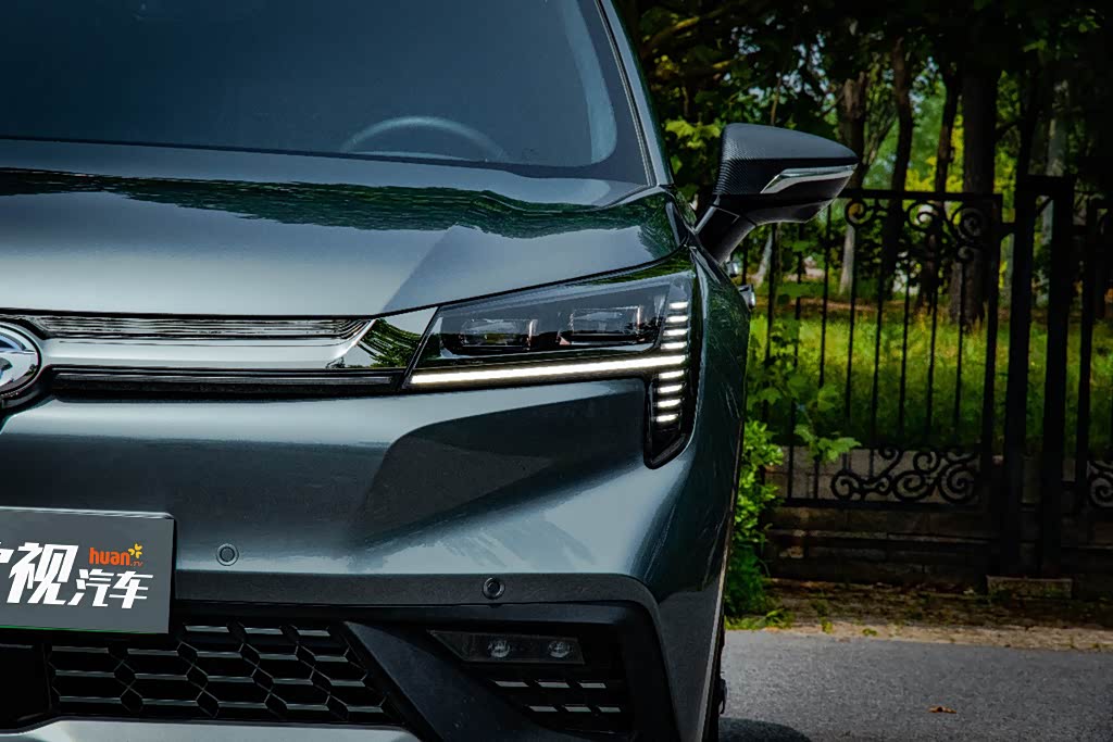 除了“冲动”的形态,我们试驾的这辆Aion LX还挺“潮”的。首先是它采用了隐藏式B柱和C柱的设计,让车辆从车窗这部分看上起更大了。另外就是车门下方的立体曲面,给车身多了几分的凌厉。