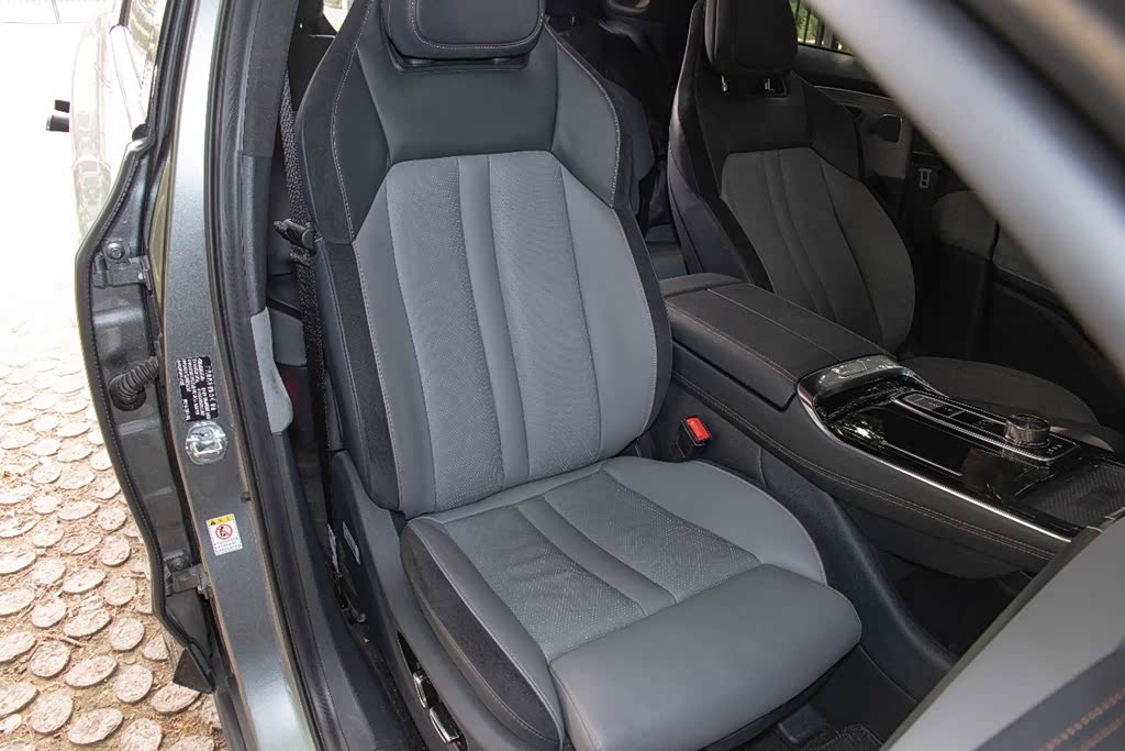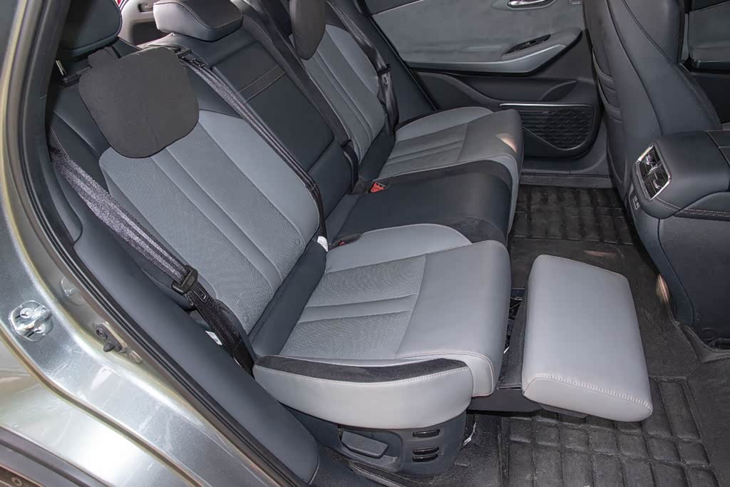 接下来说说Aion LX的座椅,首先前排座椅是运动化风格的,无论是坐垫还是靠背,都有充足的支撑和包裹。此外Aion LX全系都配备了主驾座椅10向电动调节、延长腿托,还有通风、加热和记忆功能;而副驾座椅全系都配备了4向电动调节功能,延长腿托则需要额外选装。虽然副驾全系都没有加热通风功能,但全系的主副驾座椅都是电动调节就已经很厚道了。