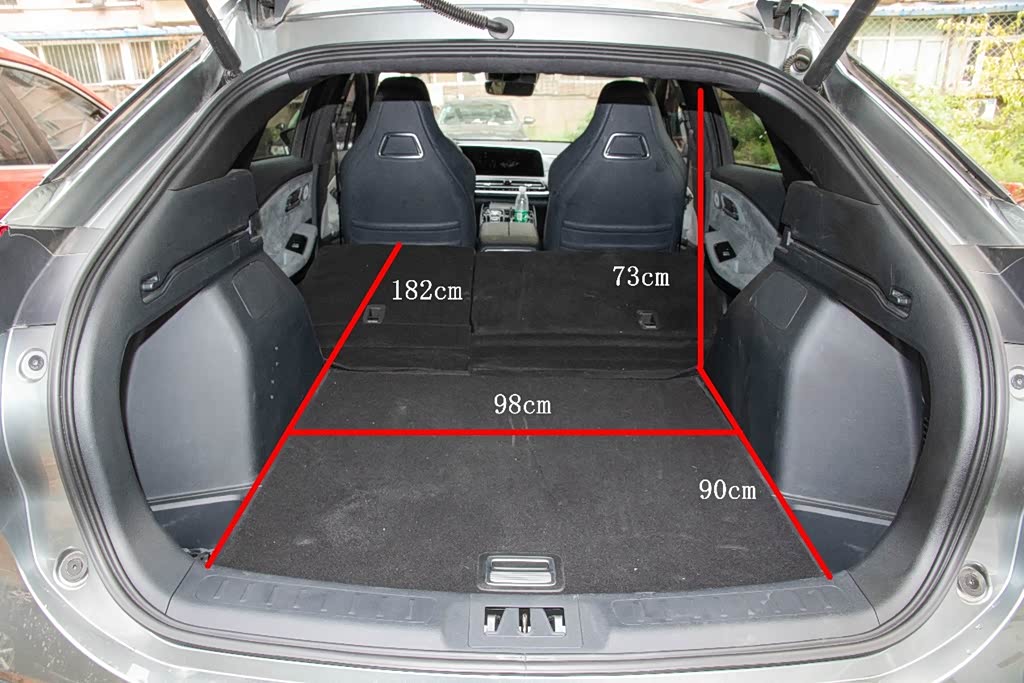 在储物空间方面,Aion LX无论是车门上还是中央扶手附近的储物格空间都还算不错,完全够用了。而后备厢标准状态下宽度和深度比较好,而在后排座椅放倒后,车内的储物空间最多能拥有182cm的纵深,不过由于后排座椅靠背比较厚实,所以无法完全放平,即使用行李压在上面也不行,所以放大件或较长的物件时需要注意,其它方面没毛病。