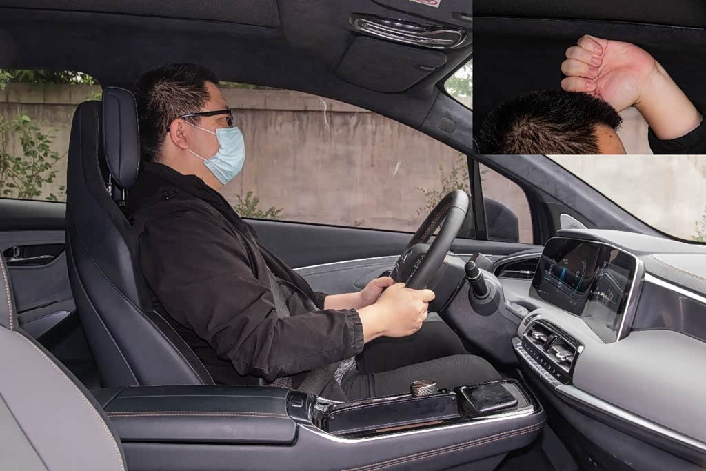 当主驾座椅位置不变,且后排座椅靠背没有向后仰的情况下,体验者在后排“正襟危坐”时腿部有两拳多的空间,头部有一指左右的空间。不过如果坐姿更随意,座椅靠背往后调一调的话,头部和腿部都还是比较宽敞的。整体来看,Aion LX长达2920mm的轴距得到了物尽其用。