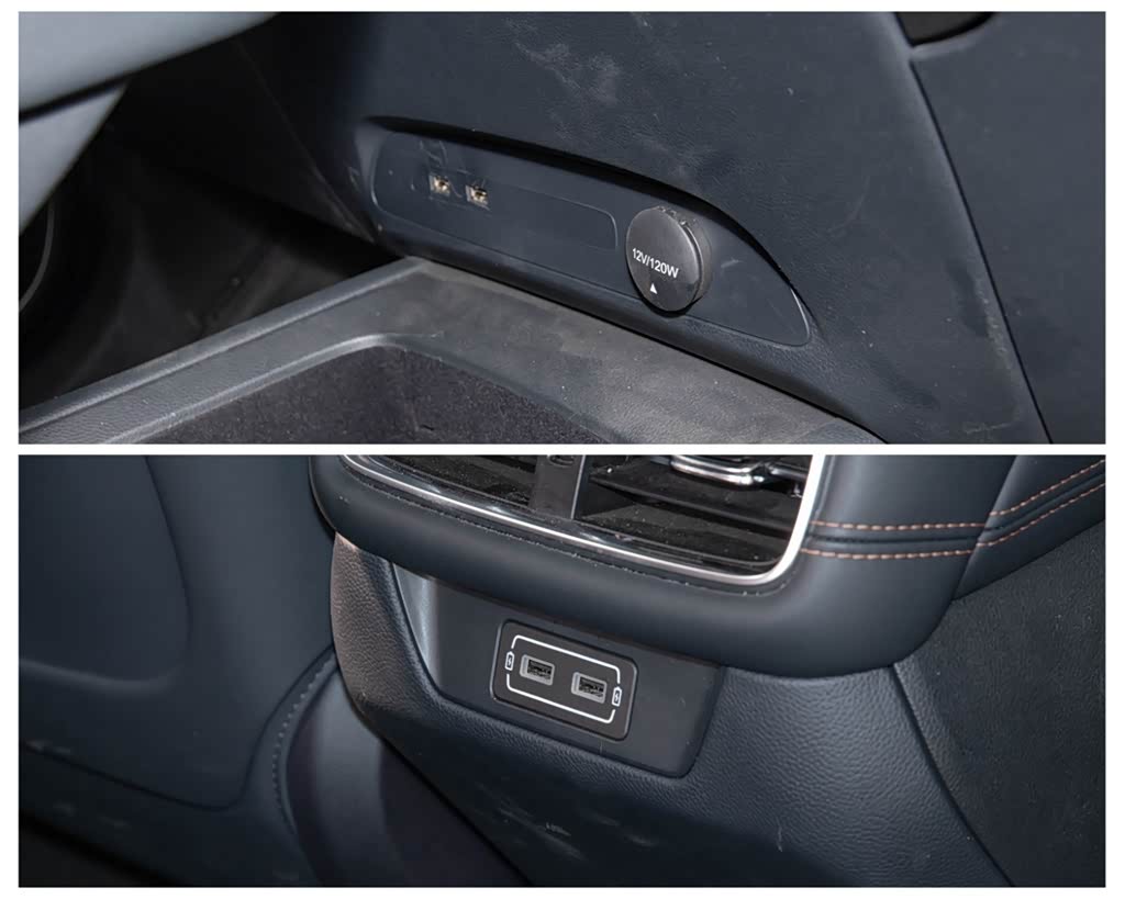 在便利功能方面,比较好评的是全系标配的前后各两个USB接口,再加上无线充电功能,正好可以满足五个人的充电需求。还有就是前排中间的开放式储物格了,虽然并没有蔚来ES6的储物槽那样长,但平常放个小物件,或者姑娘随手放个包都还是绰绰有余的。