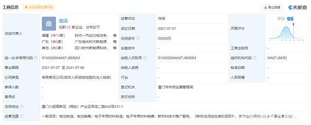 公开资料显示,成都金堂时代新材料科技有限公司法定代表人为吴锡雄,经营范围包括电子专用材料销售;电子专用材料制造;电子专用材料研发等。股东信息显示,该公司由宁德时代新能源科技股份有限公司全资持股。厦门时代新能源科技有限公司厦门时代的法定代表人为曲涛,经营范围包括电池制造;电池销售;电子专用材料制造;电子专用材料销售;新材料技术推广服务。这或意味着宁德时代将进一步扩产。