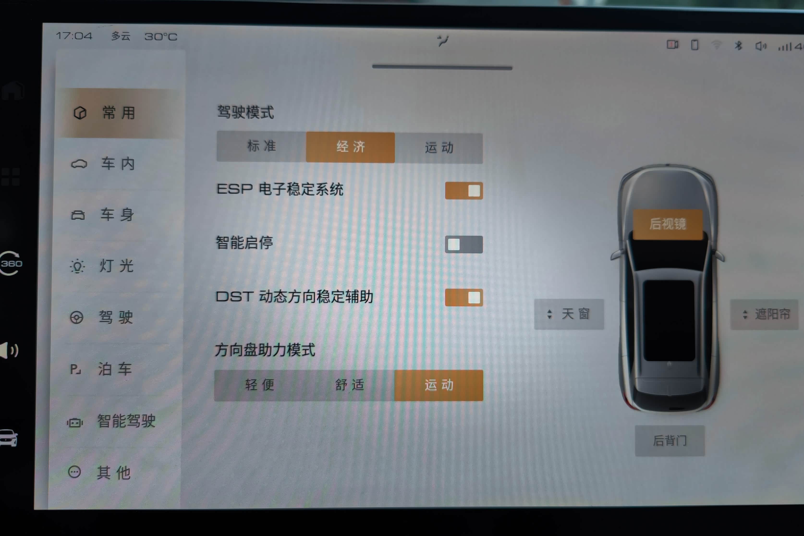 在常规选项里,有着方向盘助力模式选项,无论选哪个,都差距不是很明显,难道是我开惯了手感重的车型?