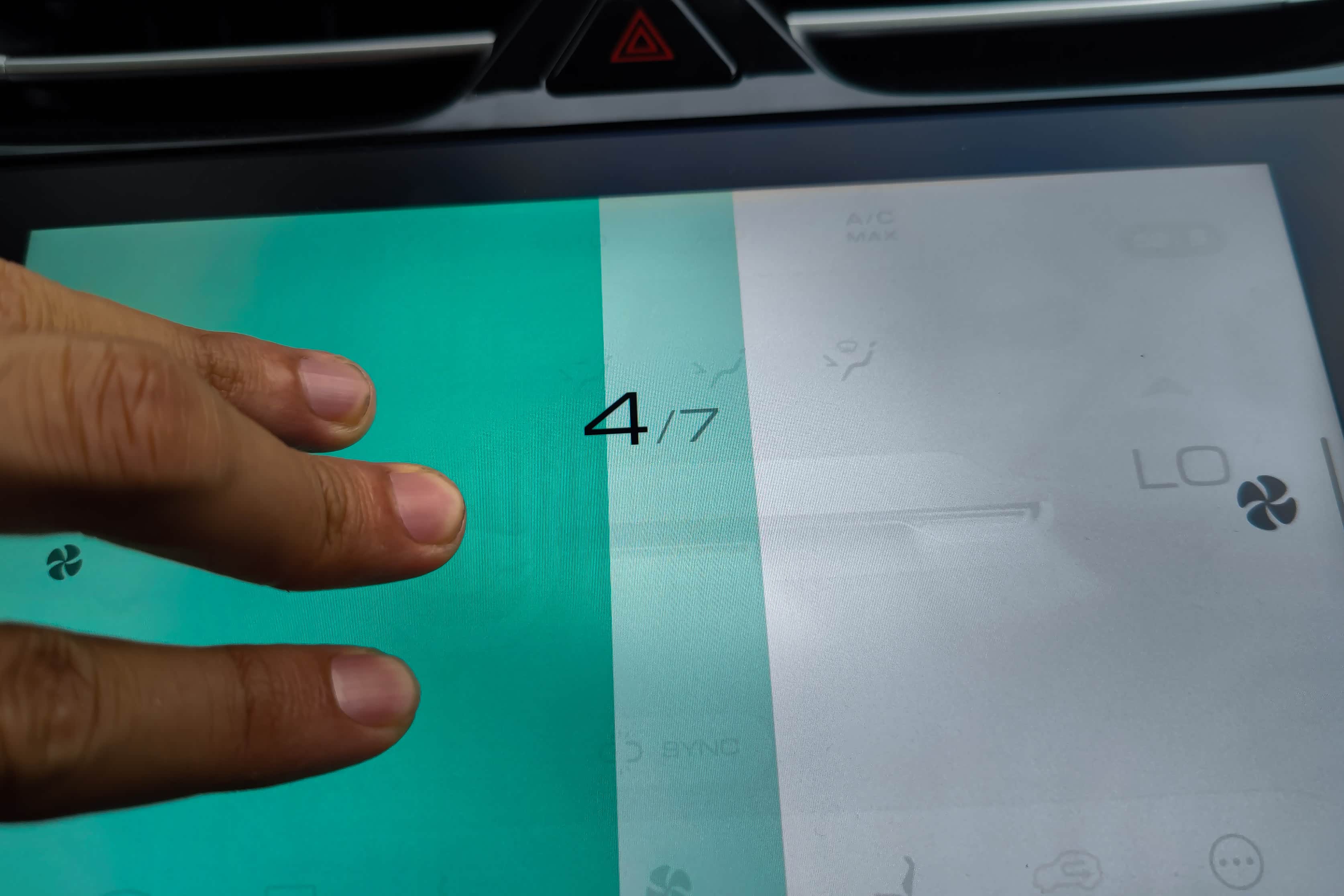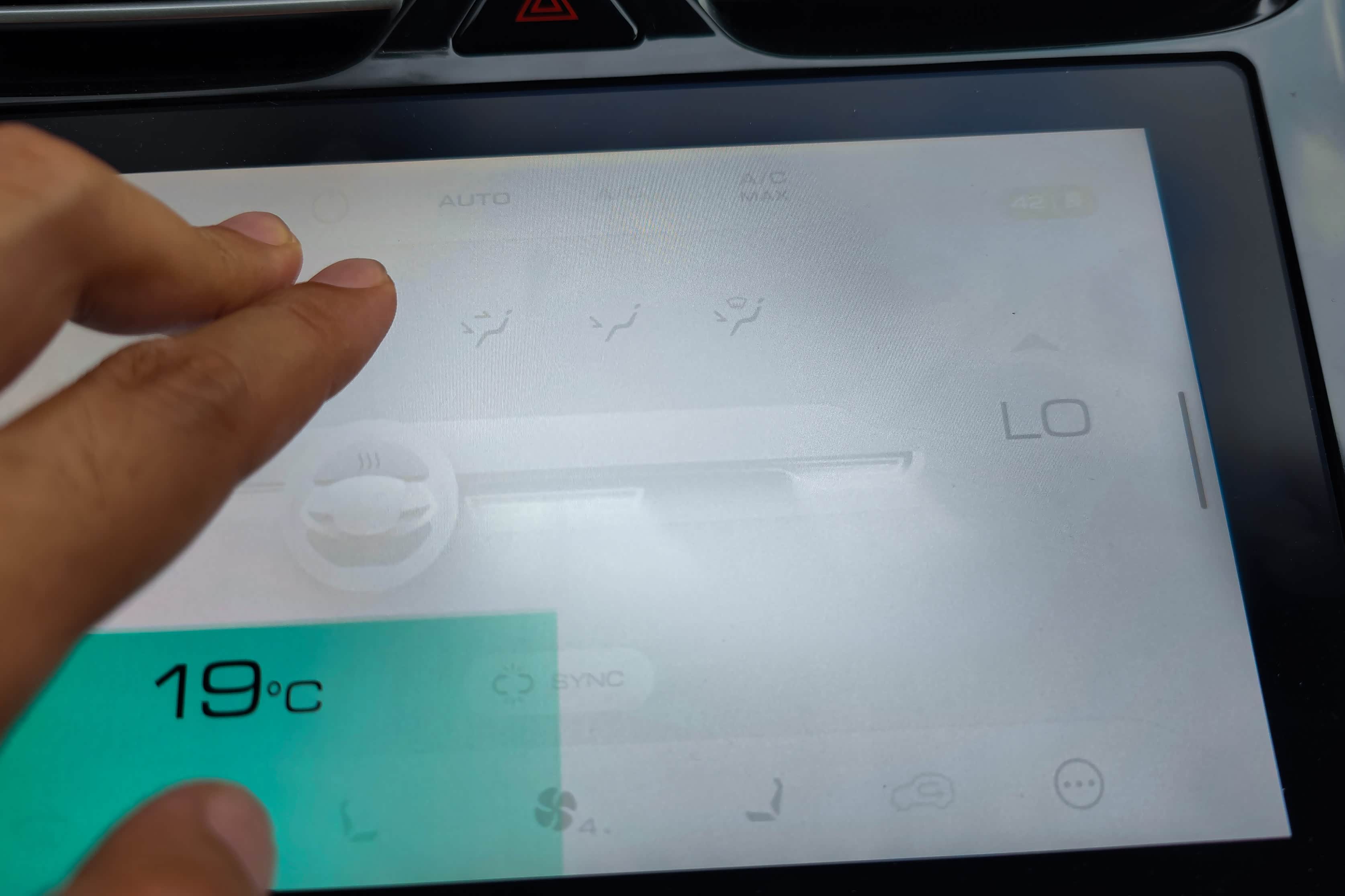 空调控制区也用了一个大屏幕,看似不如实体按键的盲操更直接。但摩卡给了一个快捷盲操设计,就是三指和两指可分别控制空调的温度、风量,并可左右分区控制,还有一个震动反馈效果,使用便捷性优秀。由此类细节可见,设计师真的用心了