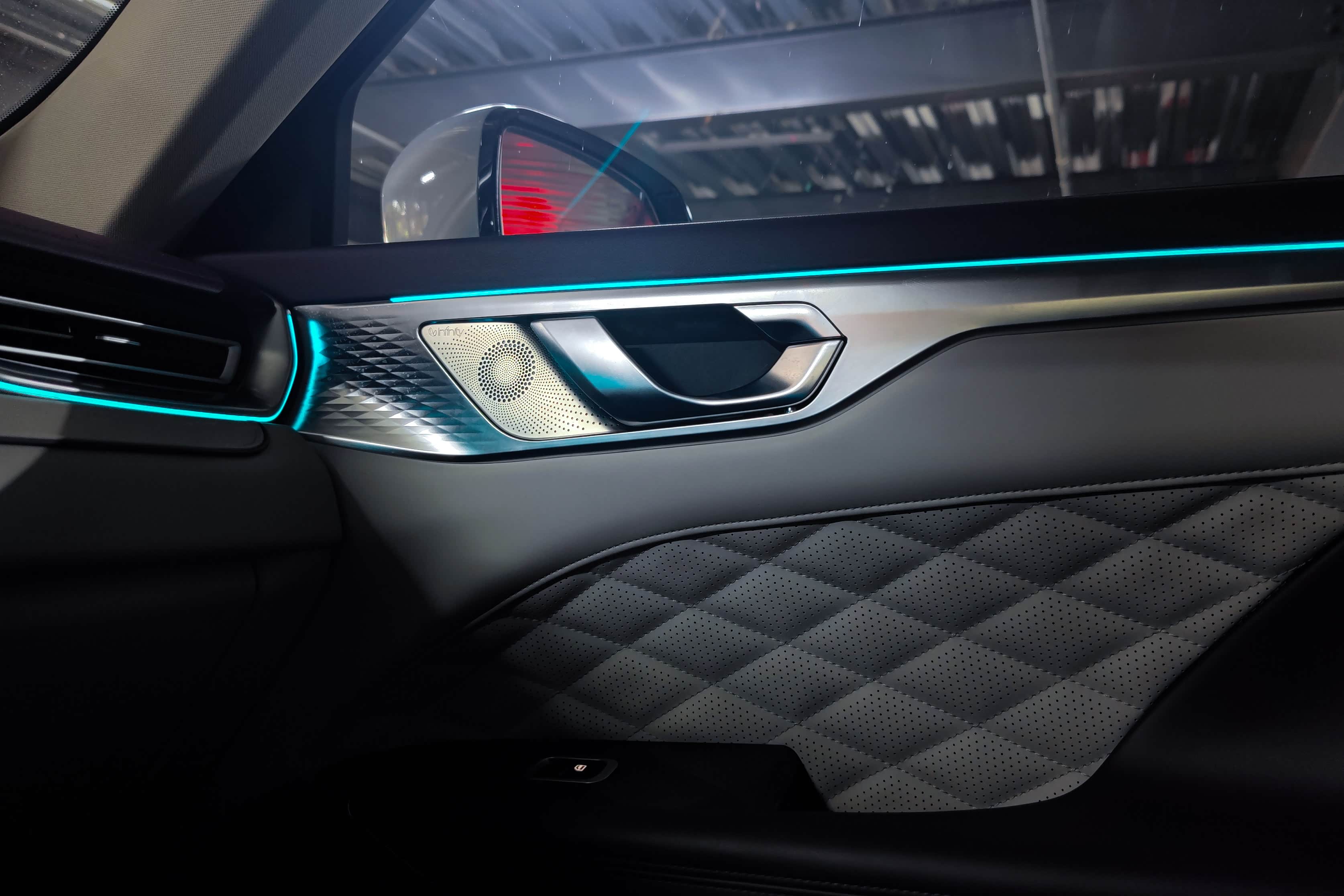 外观来说,我个人感觉头灯和尾灯的呼应是做的最漂亮的。三个竖型LED灯条日行灯和自己的车标形成了自己的元素呼应。在开关车锁,还有依次亮起的流水导向效果,点个赞