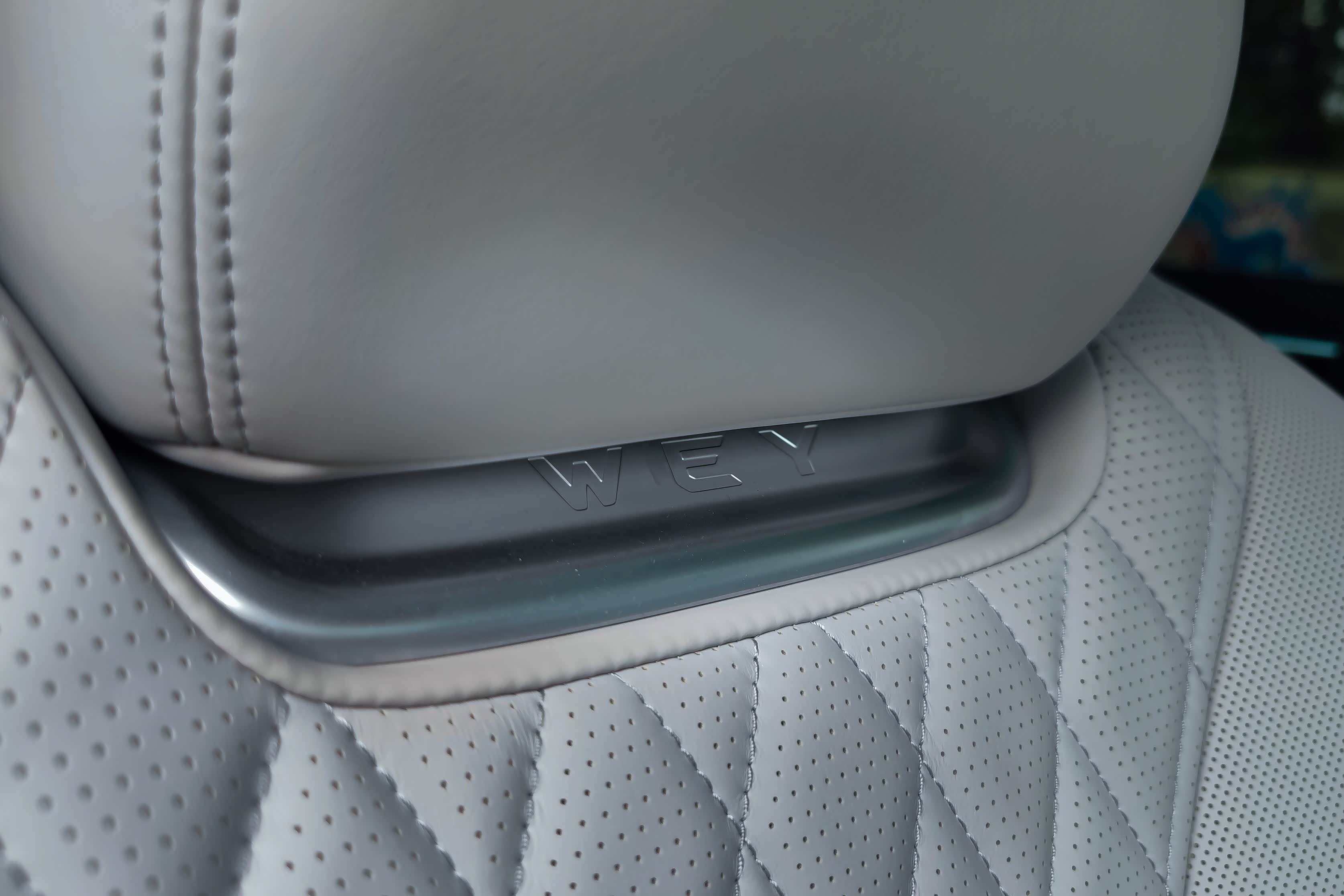 头枕下面的WEY品牌标识小细节也没有缺失,增加了一些运动元素的视觉效果,这个东西纯美观,没实际使用意义
