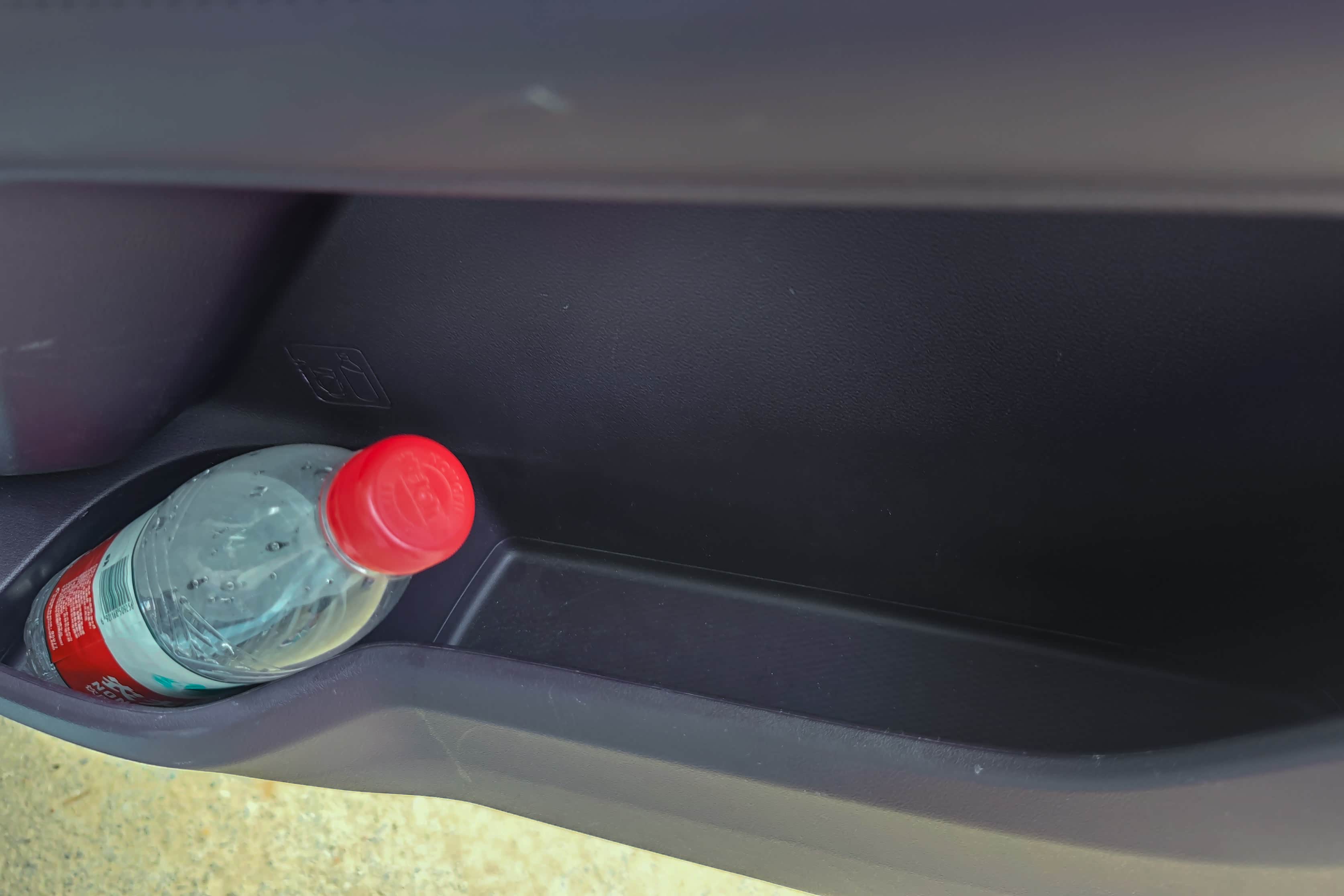门边储物空间够大,放两三瓶水无压力,但会来回晃动产生些许异响