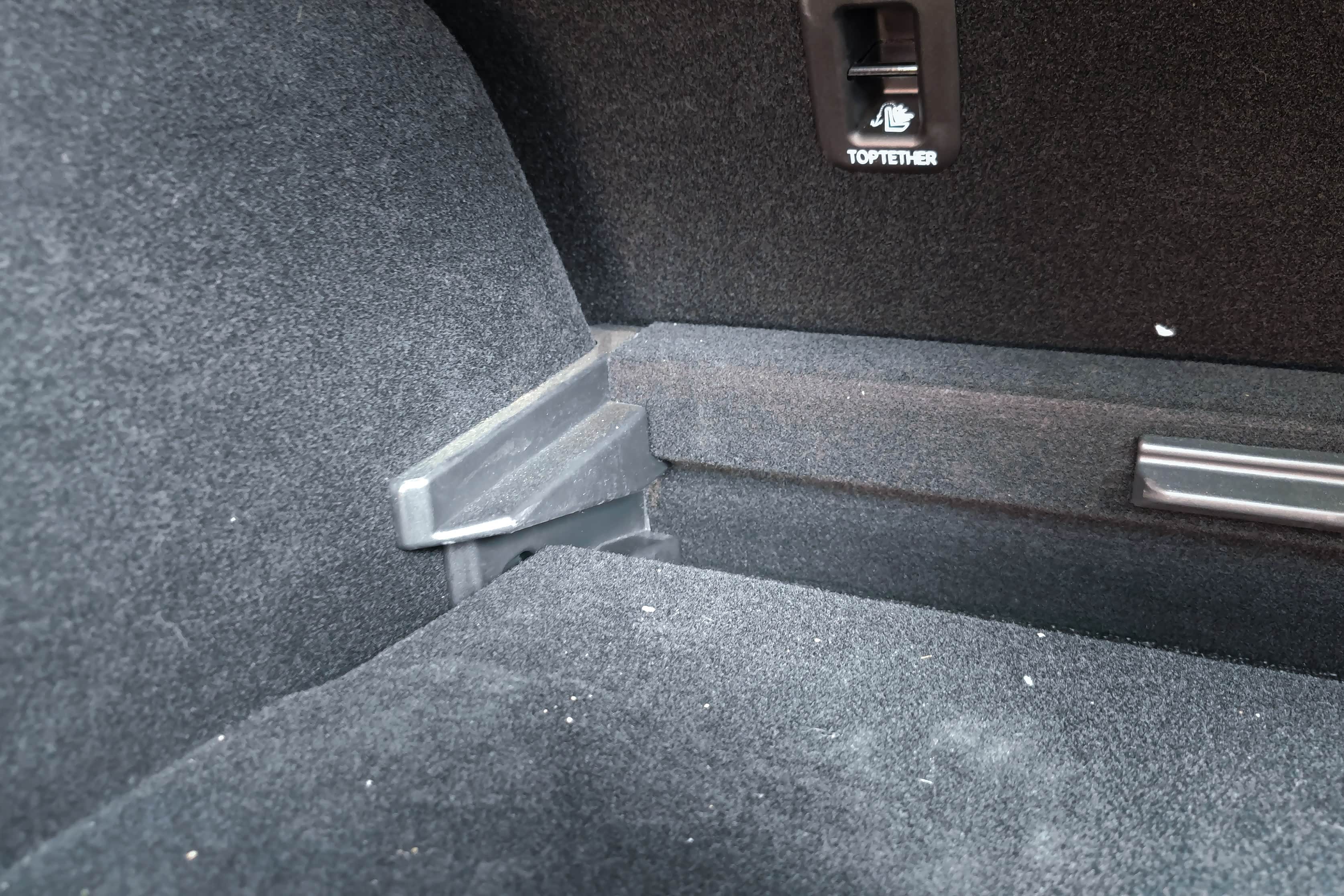由于后排座椅可以放倒,后备箱为了找平,给了上下分层的盖板设计