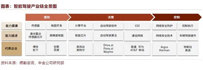 在控制层面,网络安全防护大多是与专业服务商合作开发,未来可能成为标准化产品;而驾驶控制执行能力则是由各个车厂进行集成和控制,能力相差不大。