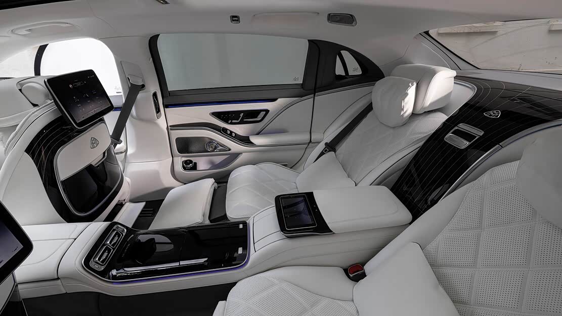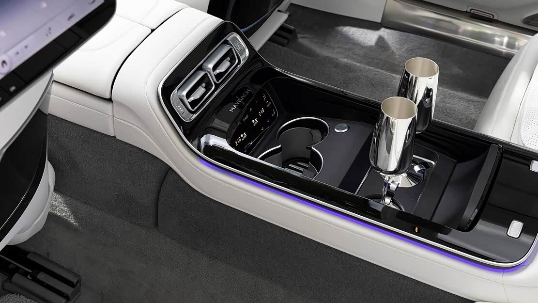 抛开珠光宝气的内饰以及那些能让你听一天故事的选材用料不谈,177mm的加长让S680拥有了恐怖的后排空间,同时给到了后排的老板们更高的乘坐自由度。其座椅椅背的最大倾斜角度可达43°,接近半躺状态,坐垫同样进行了加长,来提升对腿部的支撑度。另外,像是座椅按摩、座椅加热、后排液晶屏幕,控制平台,小桌台,冰箱等一应俱全。值得一提的是,当你落座时,安全带还会自动递到你跟前,就像坐进跑车那样。