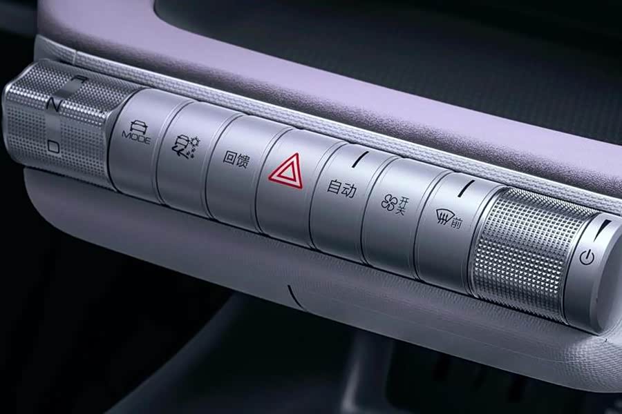在中控中央区域,传统的空调按键位置能看到一个储物格,它的边缘部分设计了一排滚轮式和按键式的操作区域,能看到左侧位置有明显的“RND”字样,换挡机构也放置在此,实属新颖。