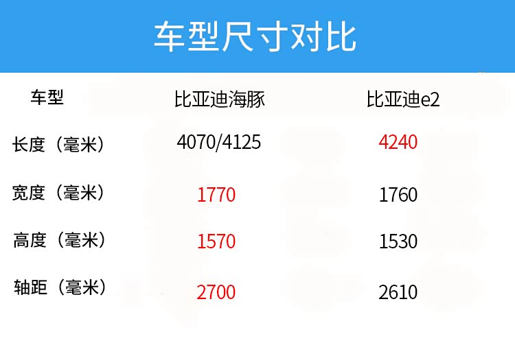 车身侧面,根据此前的申报信息来看,它的长宽高分别为4070(4125)毫米/1770毫米/1570毫米,轴距为2700毫米。而现款比亚迪e2的长宽高是4240毫米/1760毫米/1530毫米,轴距是2610毫米,这么来看,海豚的尺寸比e2大一圈。