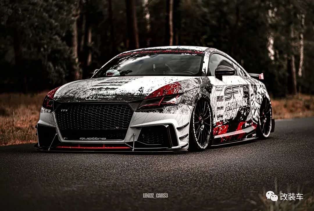 再由SFT Performance设计一套全新的泼墨涂装,让红黑配色变得更加独特。看到这么运动的外观,真的很有驾驶它的欲望,不过TT却画风一转,变成一台低趴姿态车。