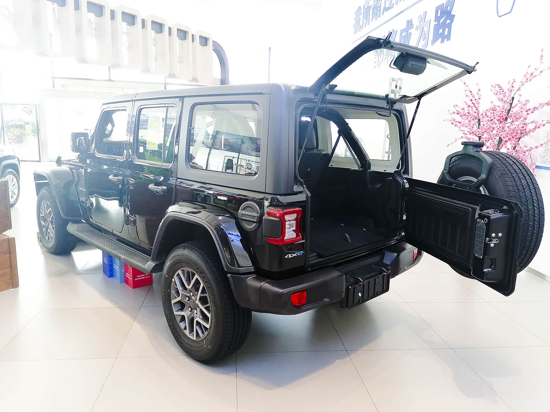后尾部左侧的尾灯下增加了4xe的标识,告诉后面的人这个车是混动版的牧马人。
