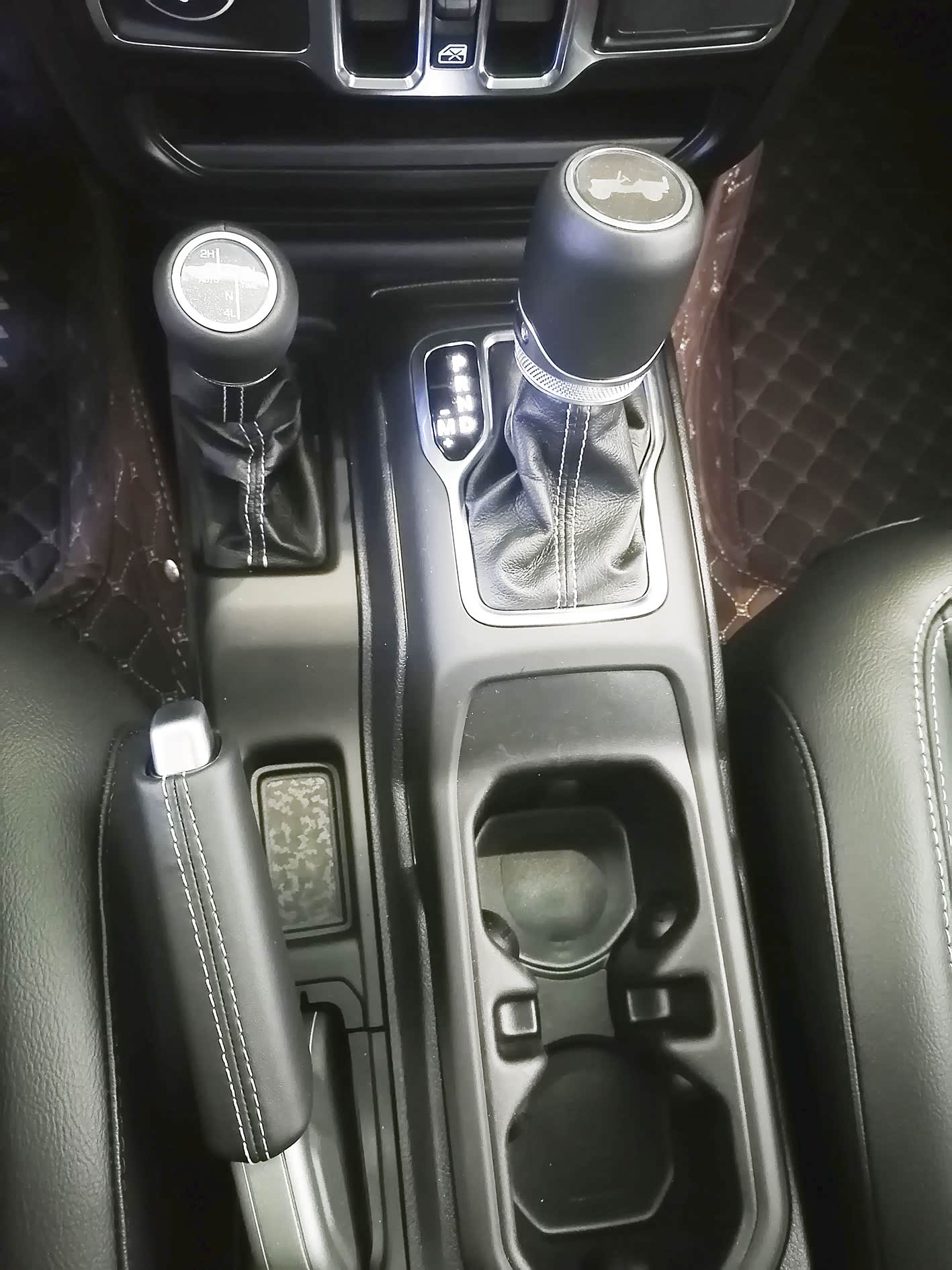 牧马人的变速箱采用了ZF的8速自动变速器,变速箱周围带一个调节四驱的档杆,2.0T的牧马人有2H纯后驱都市模式,4H AUTO智能四驱,4H高速恒式四驱和4L低速极限四驱四种全路况驾驶模式。