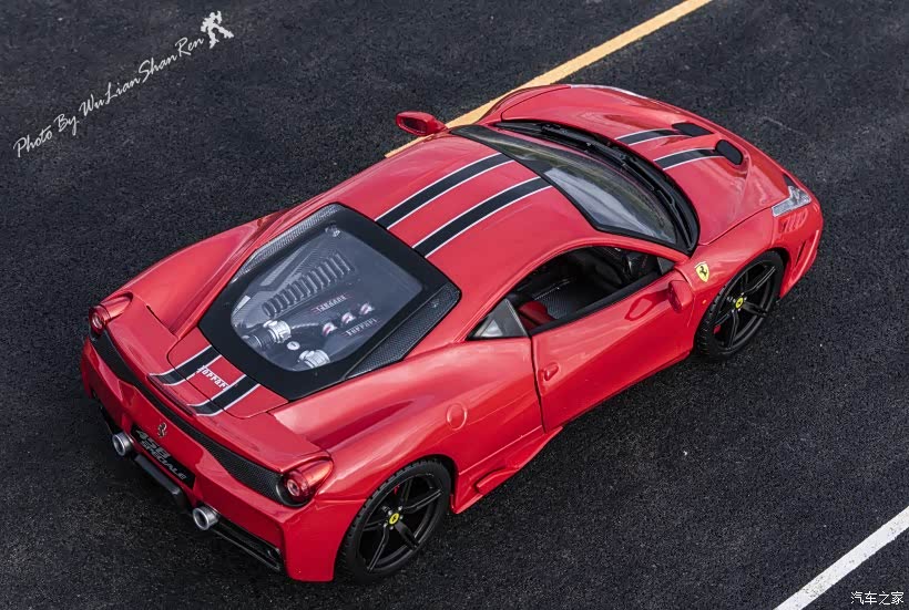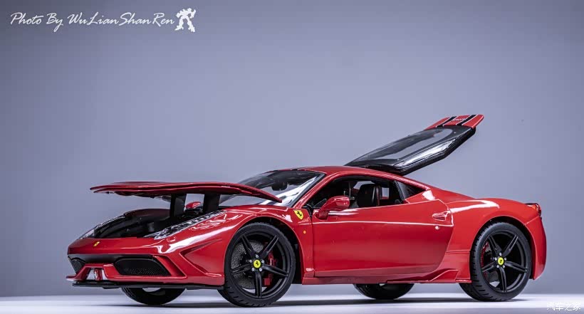 很高兴可以获得本次比美高1:18 Ferrari 458 模型评测机会,俺是五莲山人WLSR,那个喜欢拍摄汽车模型的模写者。模写(模型写真)是俺提出的一个摄影概念,是从玩写(玩具写真)中分离出来了,因为作为模型爱好者没有一个人愿意把汽车模型看作是儿童玩具。在汽车模型爱好者眼中,汽车模型是汽车文化的载体,具有收藏价值的工艺艺术品。俺因为喜欢收集汽车模型,从而喜欢拍摄汽车模型。如何把汽车模型拍摄的像真车那样是模写者的追求。莫道以梦为马,但求“假”亦成真!俺喜欢把汽车模型带到大自然中去外拍,俺曾提出过山人模型摄 一影一虚实,一模一天地。接下来分享最近几年在汽车之家论坛发布的部分模型图片。