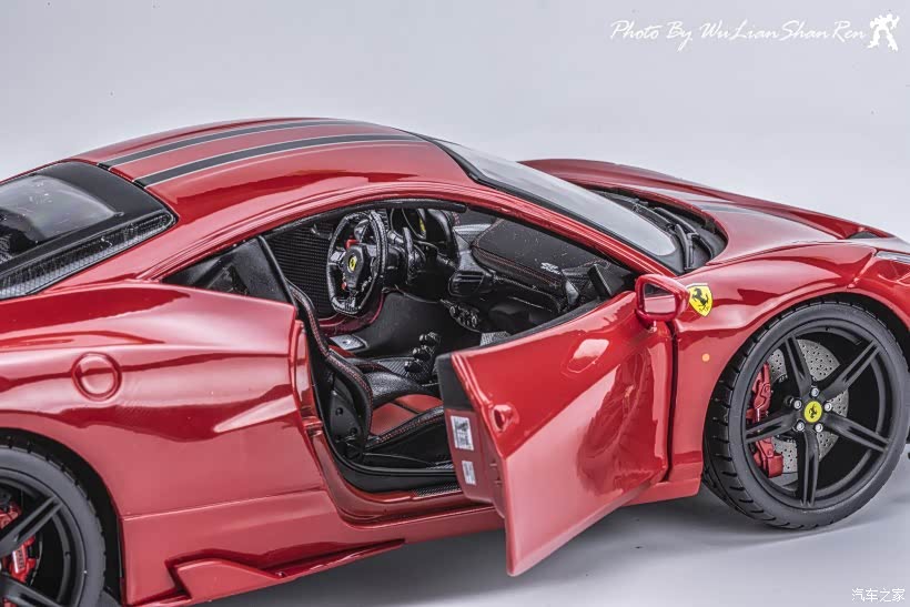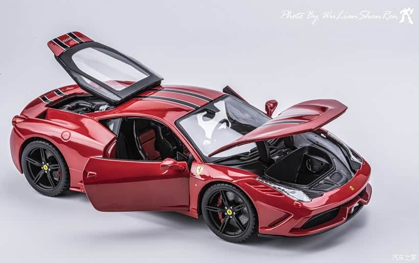 总结这款比美高1:18 Ferrari 458speciale的汽车模型作工尚可,版型较准。价格实惠,性价比超高。但要是给两侧车门加上车窗再原价出售的话,那就无敌了。