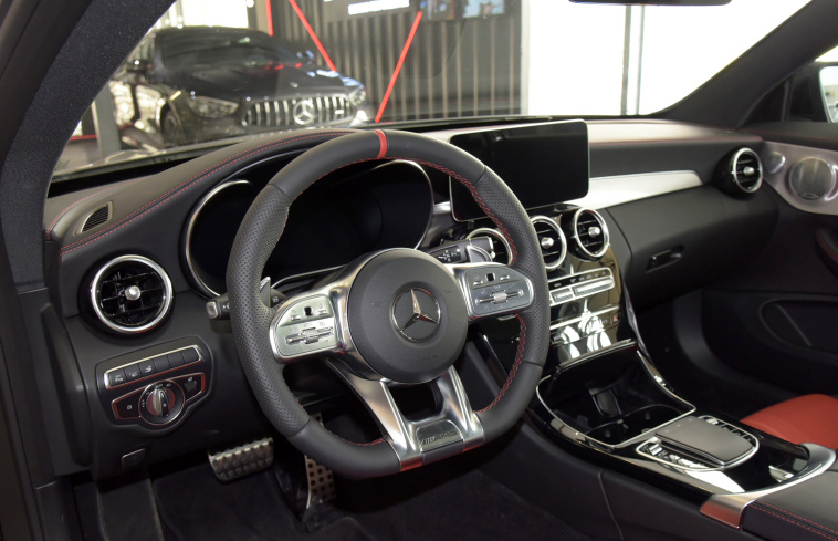 内饰方面,新车和现款车型相比变化同样不明显。车内搭载全液晶仪表、悬浮式的中控屏幕,为整车带来不错的科技感,车内配备的AMG高性能座椅、AMG高性能方向盘,搭配大面积的翻毛皮包覆,使新车表现出不错运动氛围,与外观相呼应。