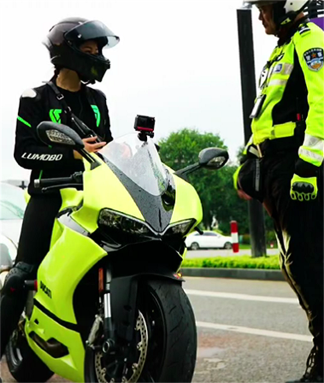 原来,这款杜卡迪的959的颜色是绿色,由于车辆改色过了,需要在一定时间内备案,而车主没有及时备案,于是被交警拦下后查证,现场警告车主让对方早点去备案。