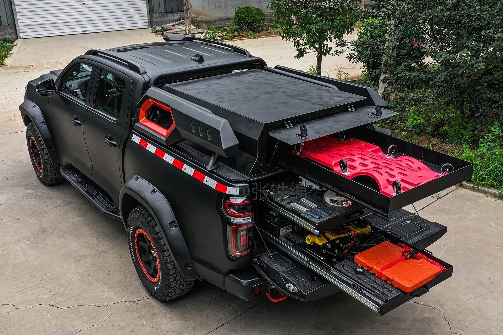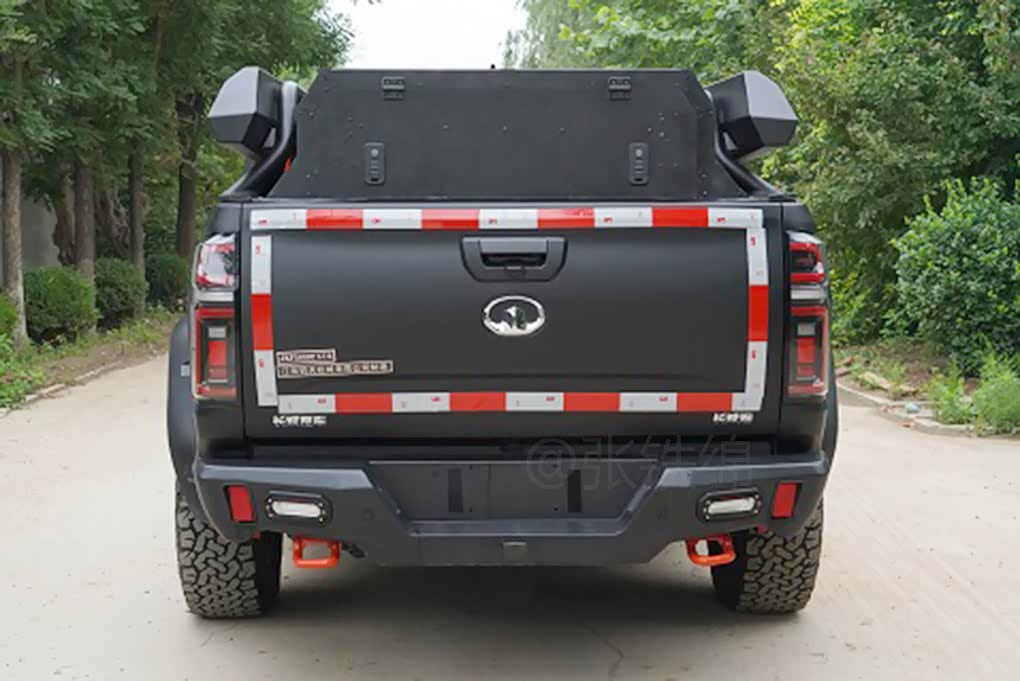 尾部的造型和此前长城申报的版本有所区别,除了后杠两侧增加了LED照明灯,因为此次是以检修车的形式申报,因此在货箱内增加了工具箱。