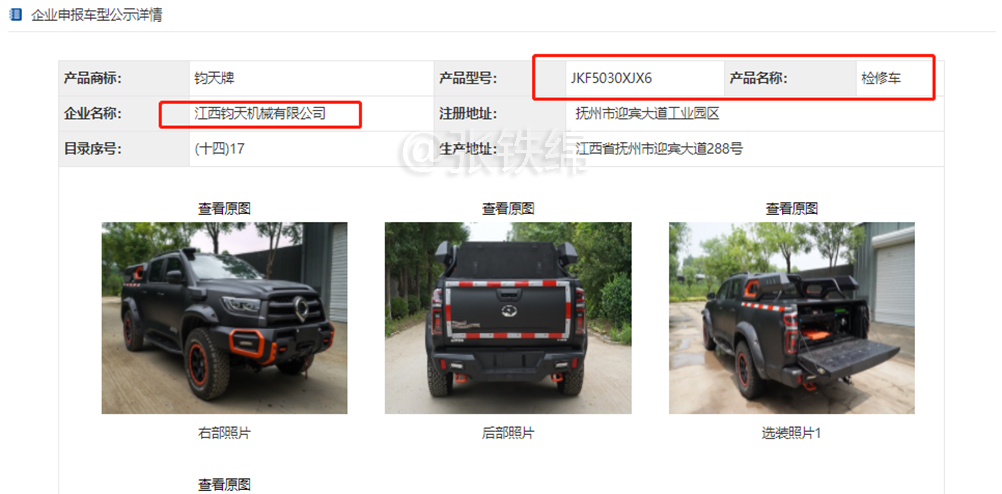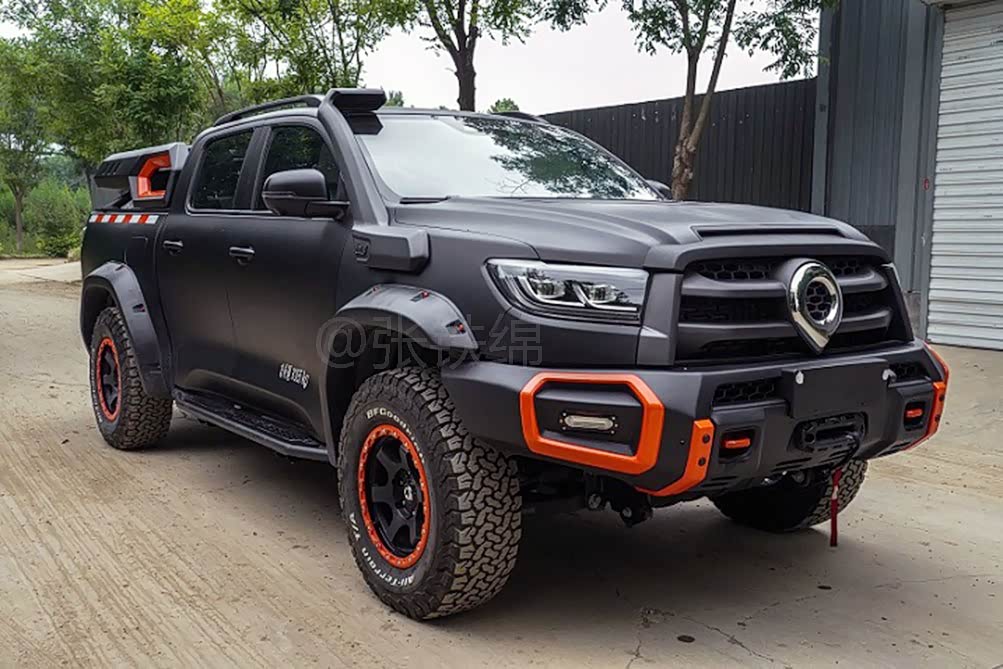 不过这一次的申报方并不是长城,而是专业改装厂,江西钧天。从申报的实车图来看,这一次的外观更接近此前上海车展上亮相的版本,在前杠等位置使用了橙色的装饰。全新的竞技杠造型很粗犷,中间带有绞盘,整个前脸比普通版更显霸气。