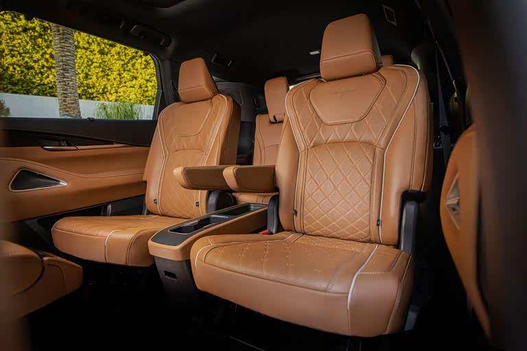 英菲尼迪的高级感不同于雷克萨斯,我们在新车上几乎见不到任何日系车特有的设计元素。相反,QX60散发的厚重感更像是北美消费者的最爱。这与现款QX50有一些相似之处,但不同的是,QX60对于力量感的拿捏要更胜一筹。它知道什么地方该用曲线,什么地方该用直线,就算是十分浮夸的尾排,也能以最好的方式令消费者接受。