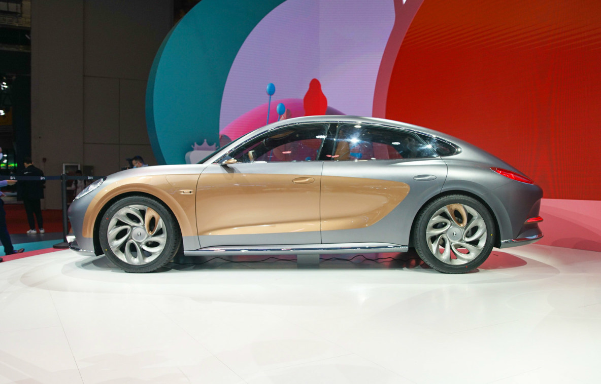 侧面采用内凹式车身设计,流畅度非常好,而且运用了帅气的大溜背造型设计。门把手采用了当下流行的隐藏式门把手。下方采用了旋风式轮毂,并对其中的一个进行了金色的装饰。车身采用了双色车身设计,看上去相当的精致、时尚,处处彰显着高端大气上档次。