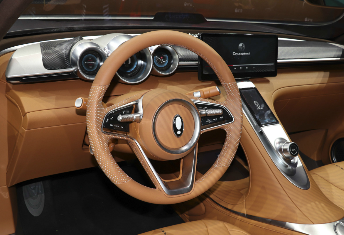 内饰采用的是三幅式多功能方向盘,搭配着悬浮式中控屏,科技感十足,搭配着炮筒式的仪表盘,带来了强烈的运动感。内饰采用银色加黄色的搭配,呈现复古科技风格。