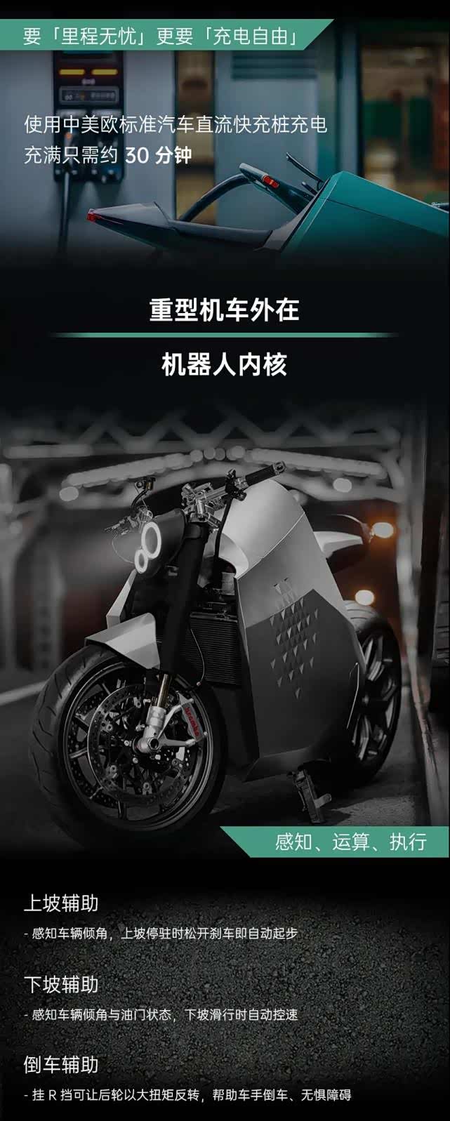 从配置上看,似乎也相当唬人,牵引力控制,EPS自平衡,上坡辅助、下坡辅助,甚至还有倒车辅助和R挡,这个确实在两轮电摩当中不多见。