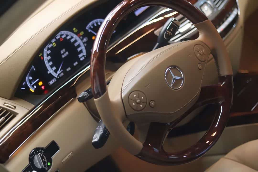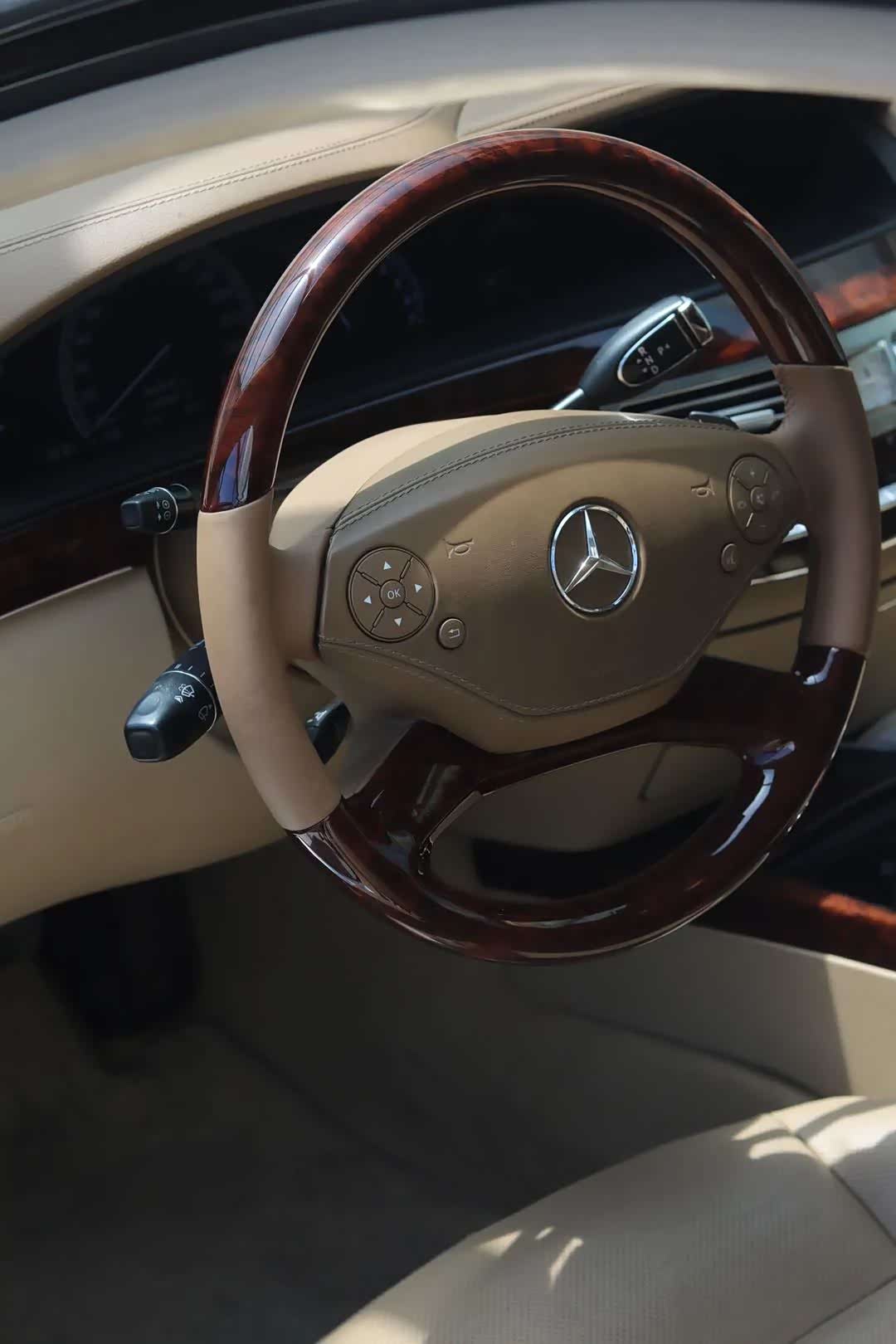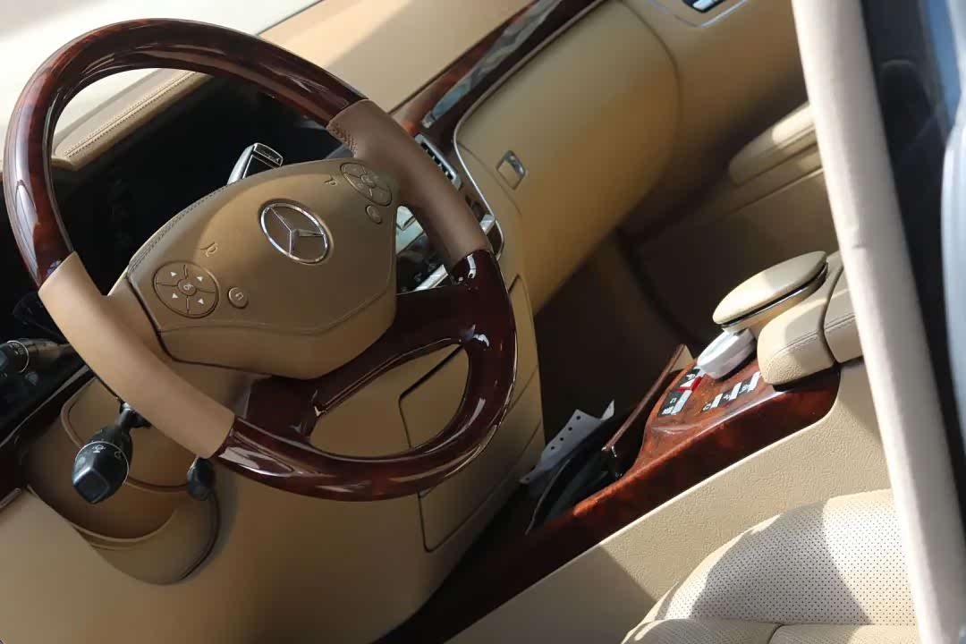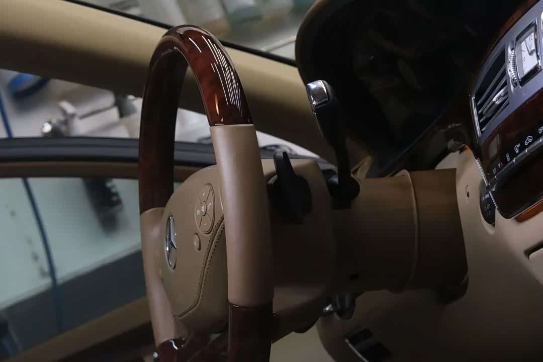 奔驰S350原厂方向盘真的跟内饰不搭调,差点意思。