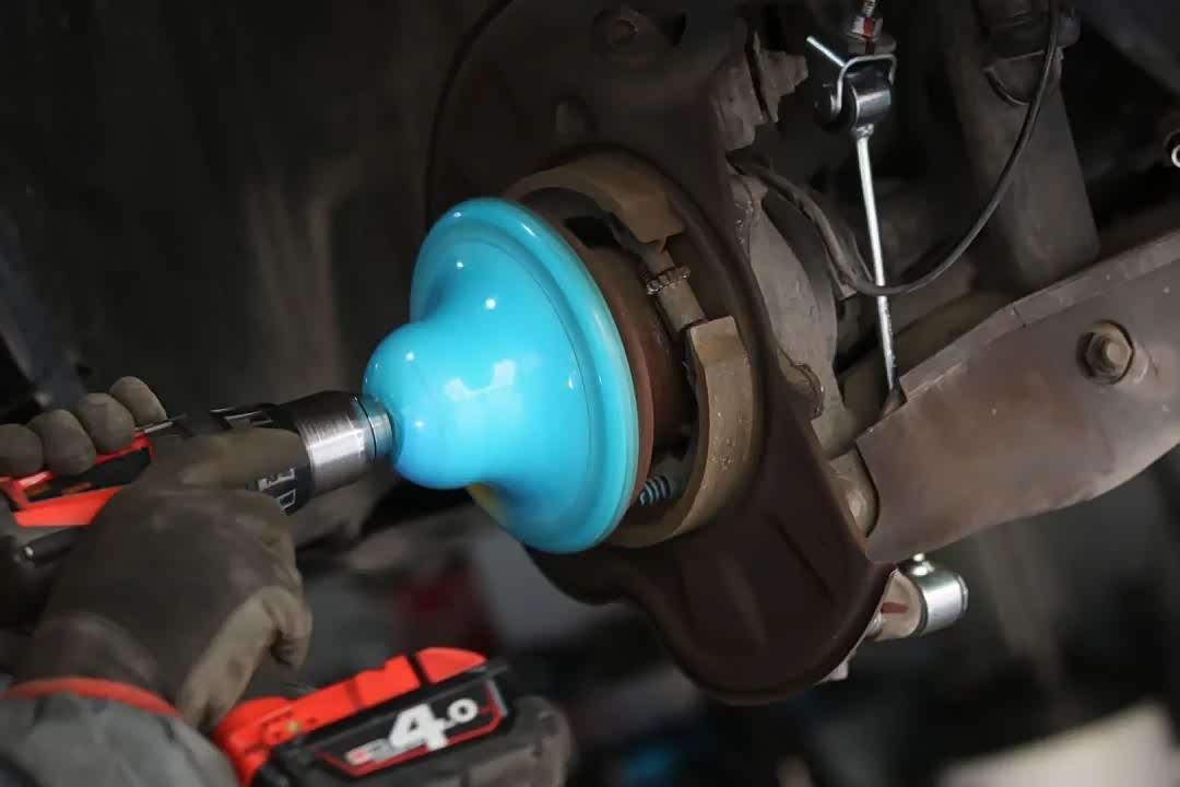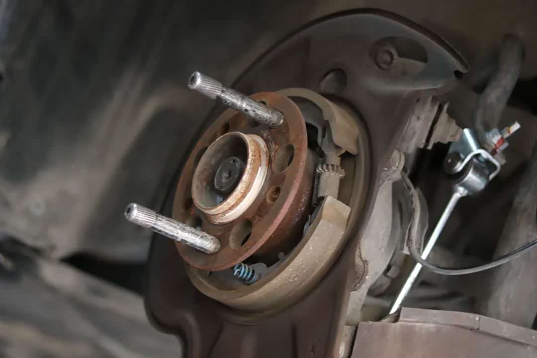 拆掉旧的盘皮,后轮制动轴头状态,看来是很久没拆过了。