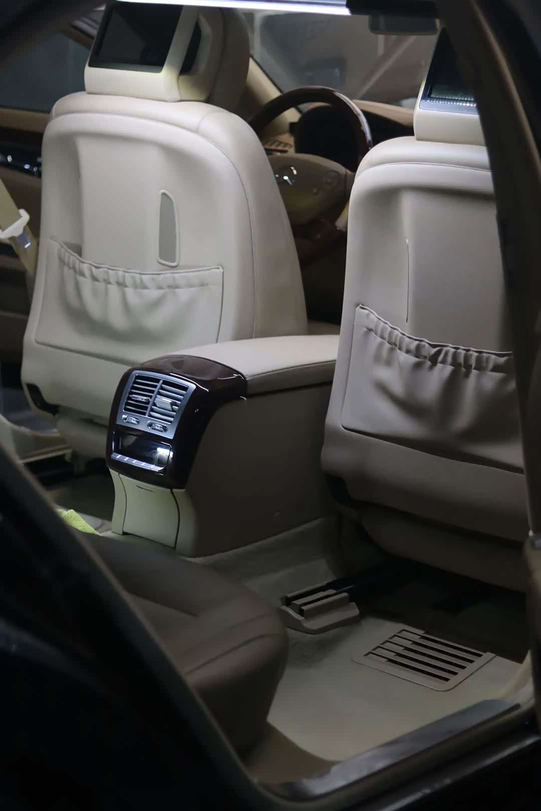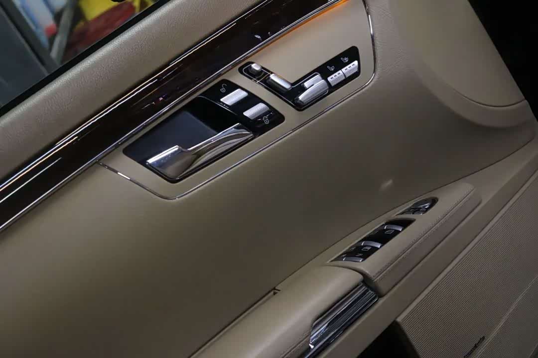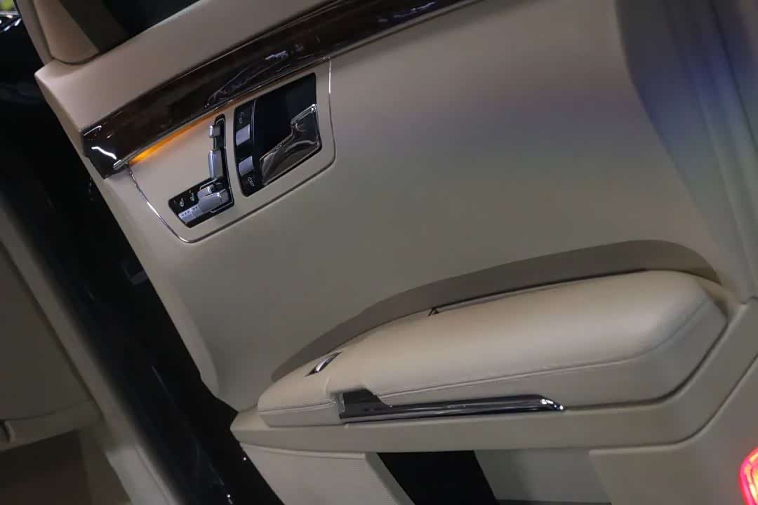 S的门板扶手皮子容易出褶皱,这台车四个门板我们都做了皱褶处理,恢复到了完美的平整度。