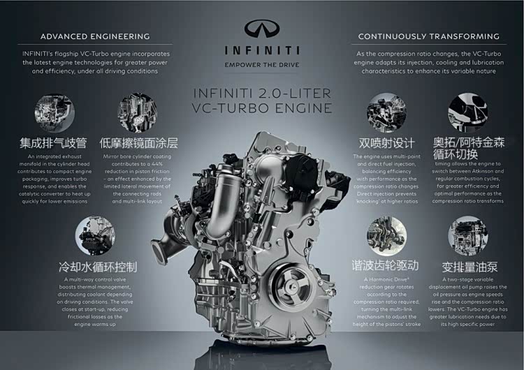 虽然因为是直列三缸机广受争议,但从发动机技术应用来说,新一代奇骏使用的这台1.5T VC-TURBO发动机确实黑科技,其最大的亮点是通过特制曲轴控制系统实现了可变压缩比,相比通过配气系统实现压缩比可变控制更精准、高效。另外,跟传统的三缸机不同,日产的这套可变压缩比其实也降低了活塞连杆的横向活动角度,对于三缸机的抑震其实也是有好处的,具体怎么样,在拿到实车后我们将做进一步解析。
