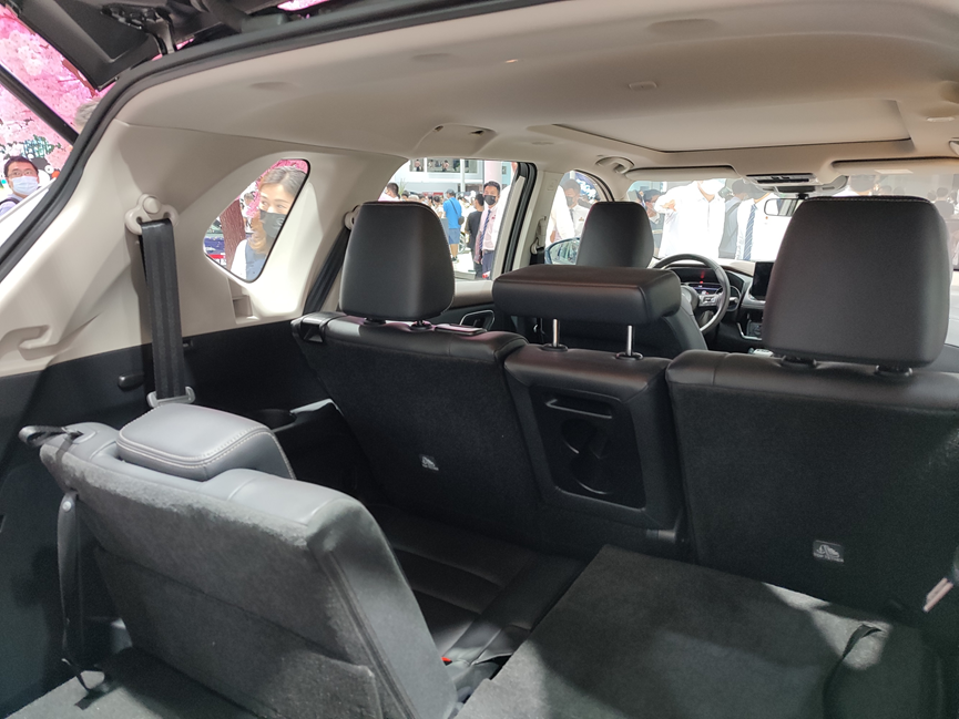 新奇骏依旧是使用七座的座椅布局,这在紧凑型SUV中比较少见。中排空间相比现款车型有所增加,乘客的活动空间比较宽裕。座椅则是延续了日常一贯的高舒适度,柔软厚实地填充物能够带来不错的舒适度。跟大多数七座SUV一样,新奇骏的后排座椅同样支持前后移动和靠背角度调节,底下更是设置了拉手一键放倒中排座椅,以方便第三排乘客上下车。后排配置方面,新车配备了中央扶手、后排出风口、电源接口、全景天窗这些配置,体验符合预期。