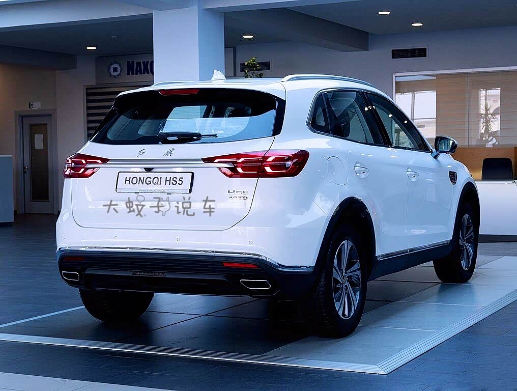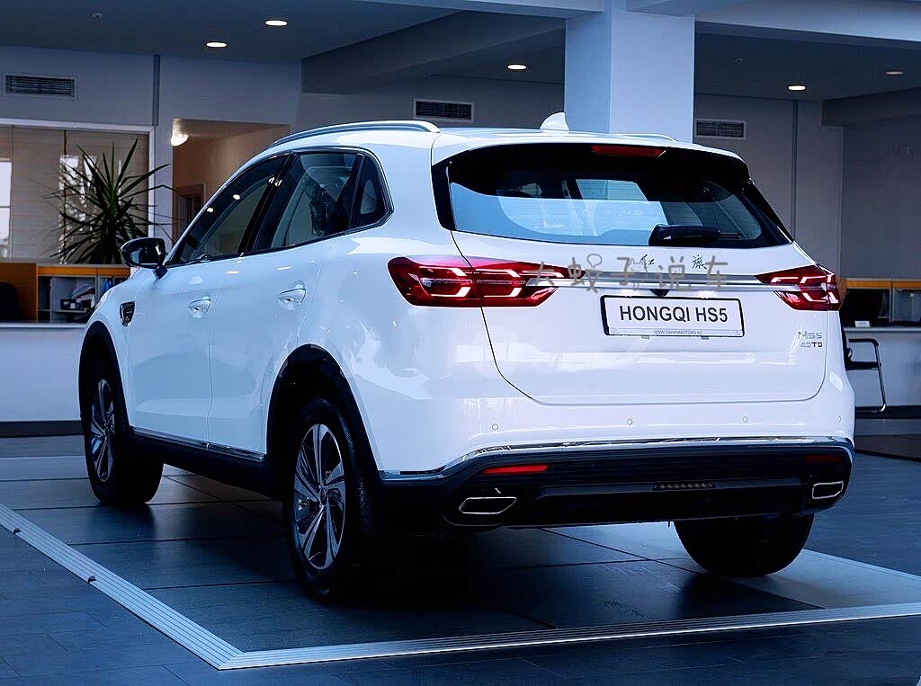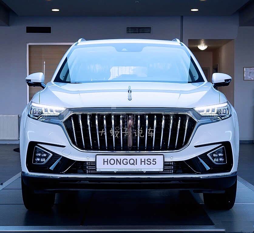 红旗HS5,定位中型SUV,中东版车型实拍,外观的颜值很高,拥有较强的豪华气场,前脸大尺寸的镀铬格栅造型充满了豪华气质,前大灯的设计极具科技感,LED日间行车灯点亮后效果出色,下包围设计厚实,两侧的雾灯设计精致。侧面简洁的车身线条带来非常规整硬朗的设计,魁梧的车身造型带来很大气的风格,C柱的造型很有大气感,镀铬的窗线很有高级感,后视镜设计精致,车门凹面处理锋利,轮毂的造型非常动感时尚。简洁的车尾造型很有大气感,镀铬装饰条连接左右两侧尾灯,尾灯的造型非常精致潮流,后包围设计动感,排气设计美观。内饰设计充满了科技感以及豪华范,中控采用对称的布局,多功能方向盘造型时尚,中控屏幕设计很有科技感,空调出风口设计简洁,按键阻尼适中,挡把设计精致,座椅宽大厚实。