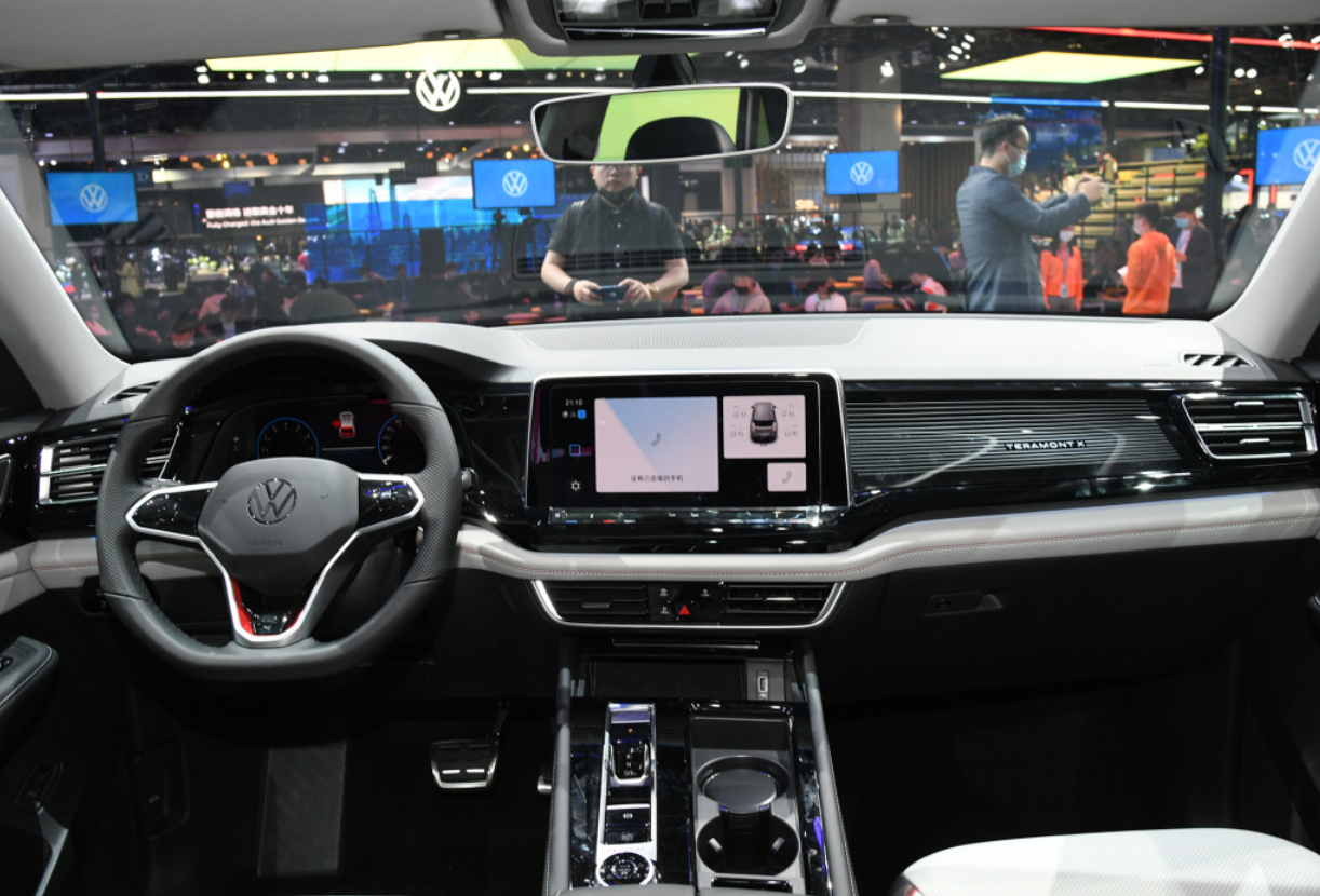 内饰方面,新款途昂X布局比较规整,风格更偏向运动化。中控区域呈“T”字形设计,横向线条的加入视觉上更加开阔,亮黑色饰板和皮质材质的包裹也增加了车内的整体质感。新车标配10.2英寸全液晶仪表盘以及12英寸嵌入式中控屏,高配版本还配有HUD抬头数字显示。另外,还配备了三幅式真皮方向盘、精致的电子档把等,科技感营造的还是不错的。