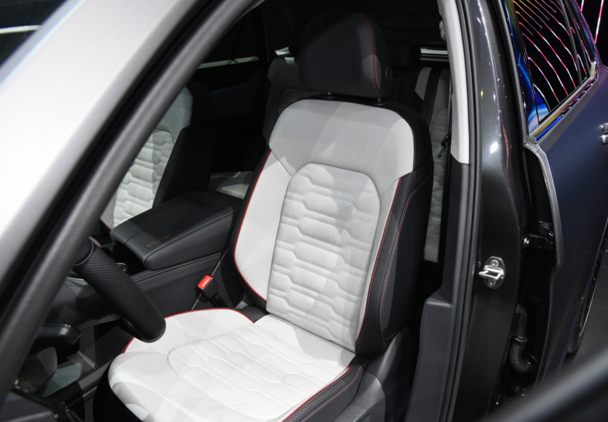 座椅方面,新款途昂X采用真皮座椅,座椅内部的缝线纹路也比较运动化。整体的包裹性和舒适感设计的都还不错。座椅功能上也比较齐全,除了主副驾驶前后/靠背/高低多向调节,还有腰部支撑、主副驾驶电动调节、前排座椅加热、驾驶位电动座椅记忆等功能。后排座椅可以按比例放倒,进一步扩展出更大的乘坐空间。