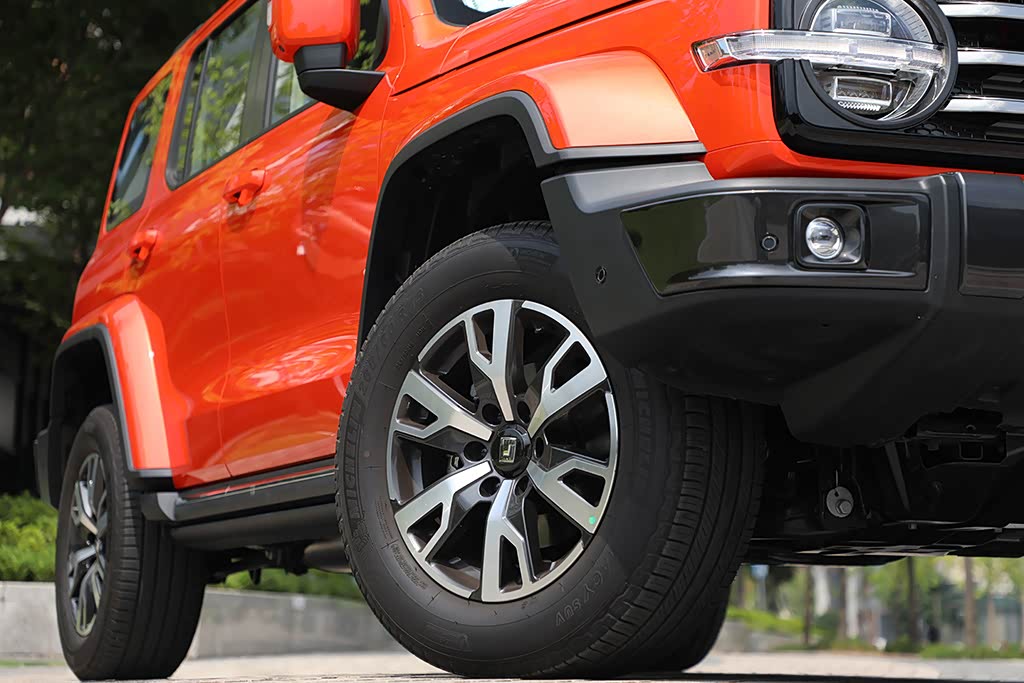 该车采用尺寸为265/60 R18的米其林公路胎,这款轮胎更加注重舒适性,这让NVH本就出色的坦克300城市版更加如虎添翼。同时高位的轮眉可以让车辆有着更广泛的悬架行程,而且也方便日后改装。